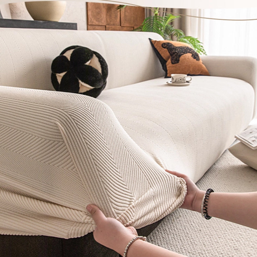 Het omhult de rugleuning, zitting, armleuningen en randen volledig en vormt zo een complete bescherming die uw bank vlekkeloos en fris houdt.