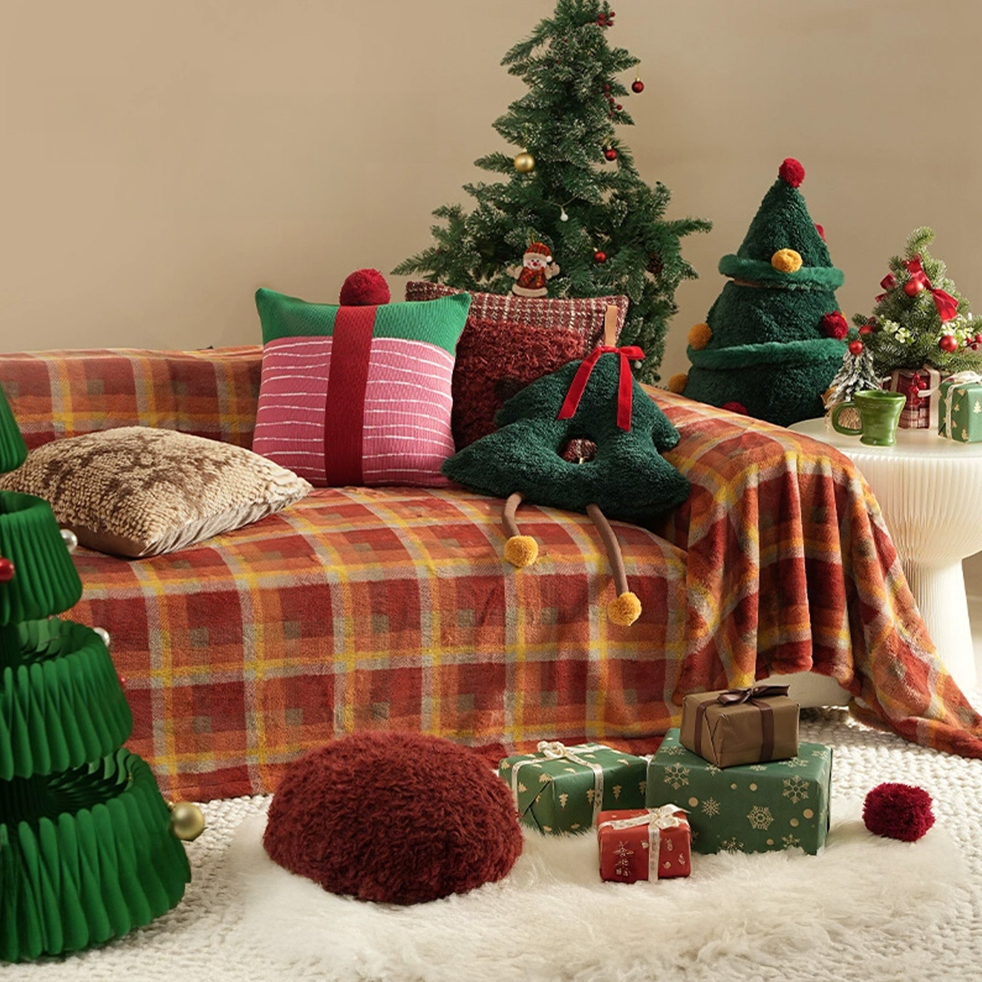 Kerst klassieke geruite pluche bankhoes, gezellig feestelijk vakantieontwerp voor uw woonkamer