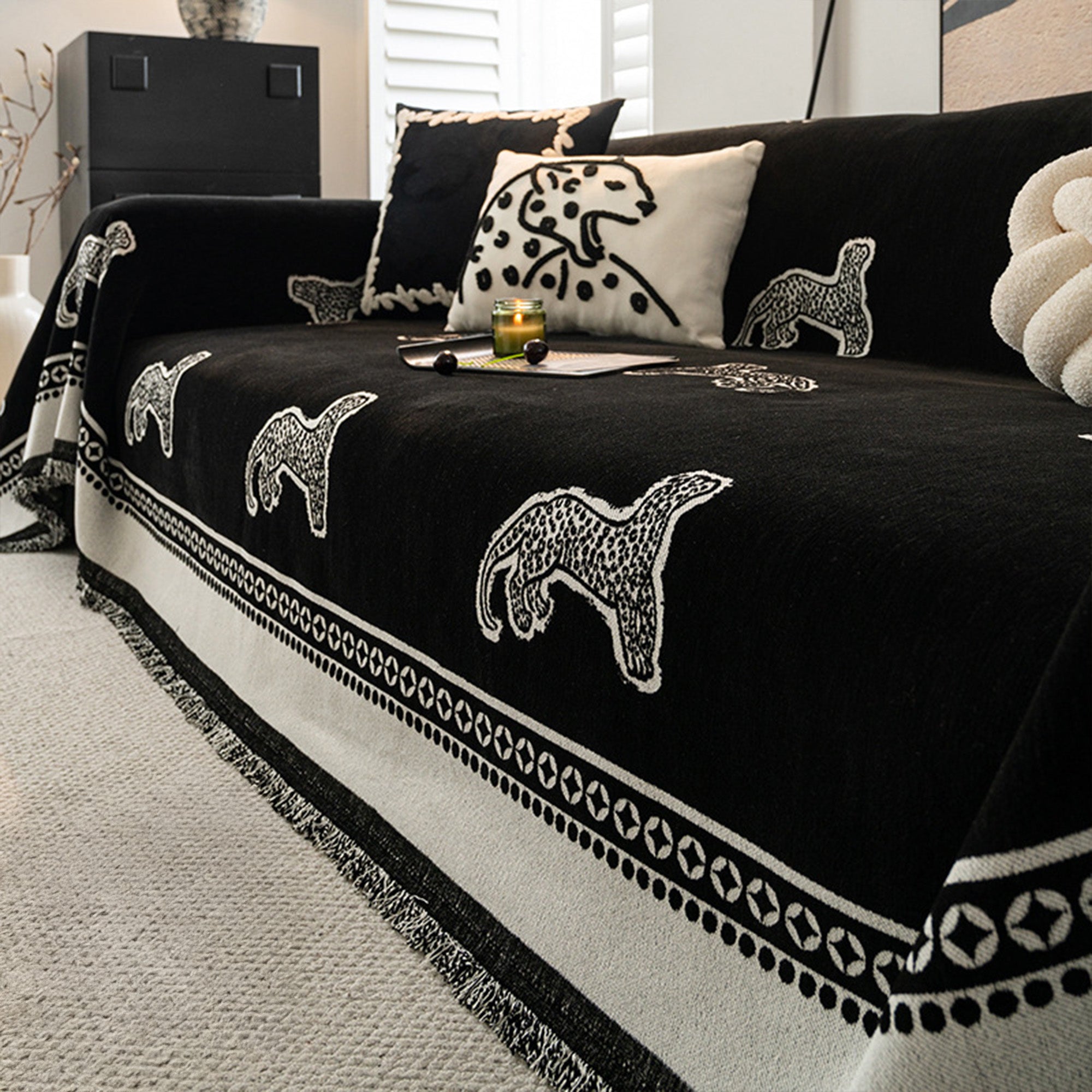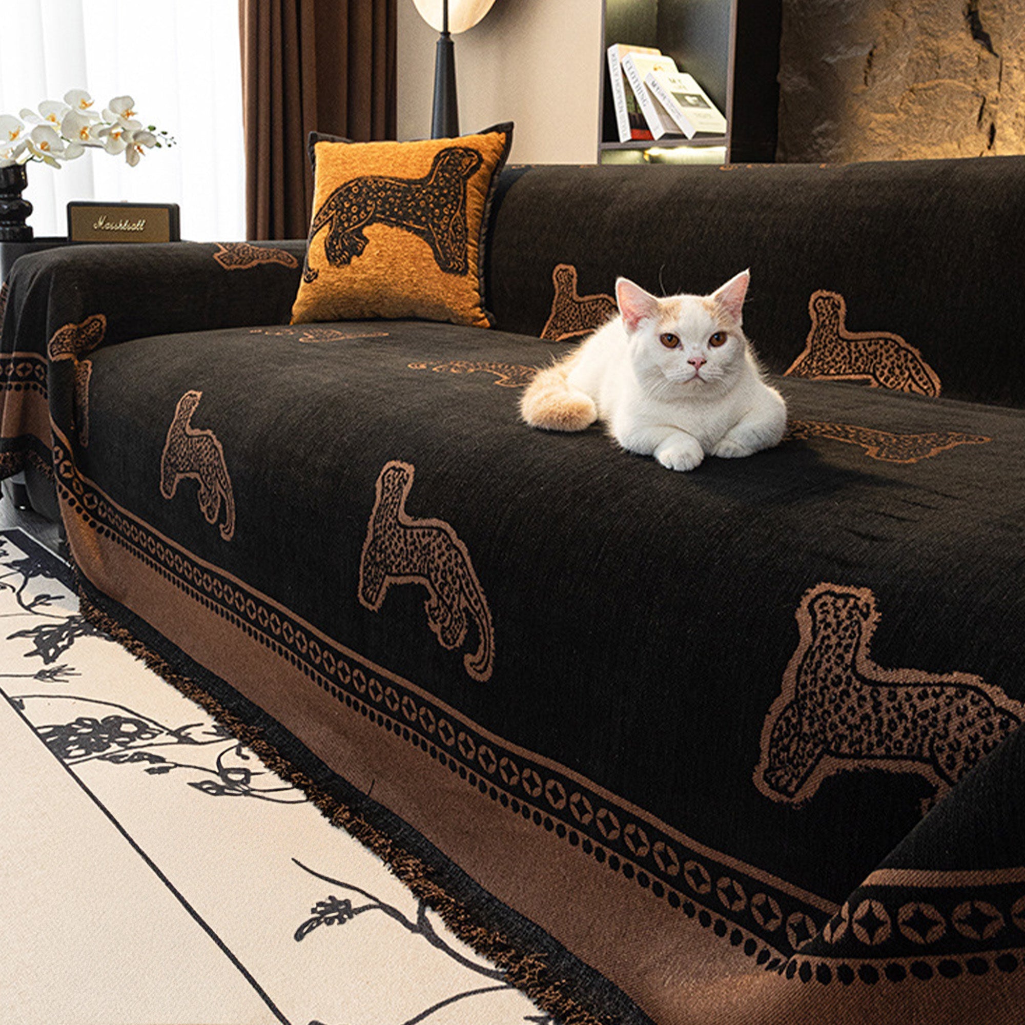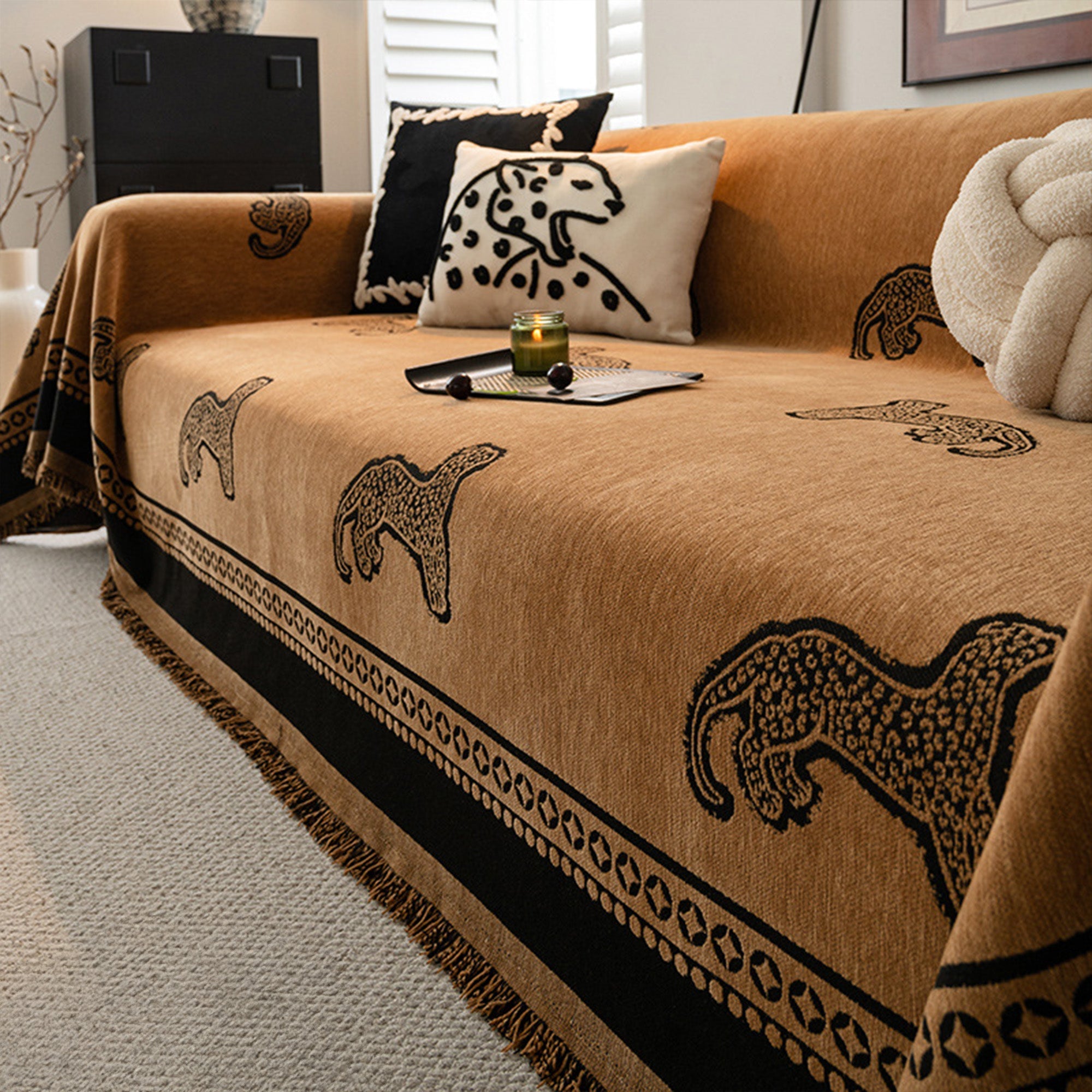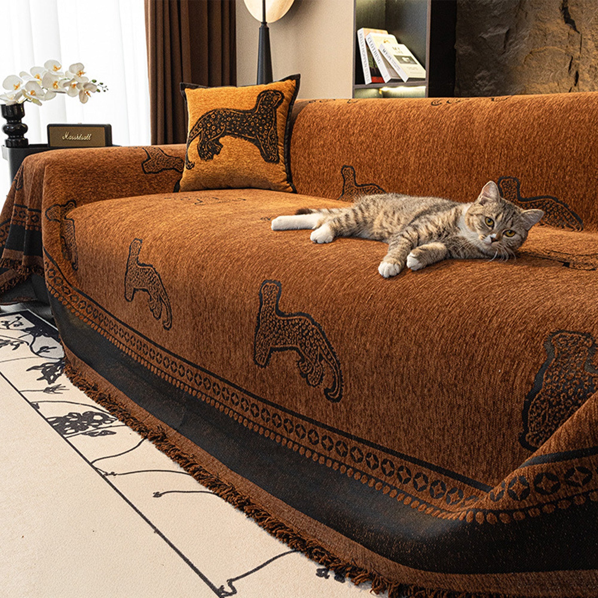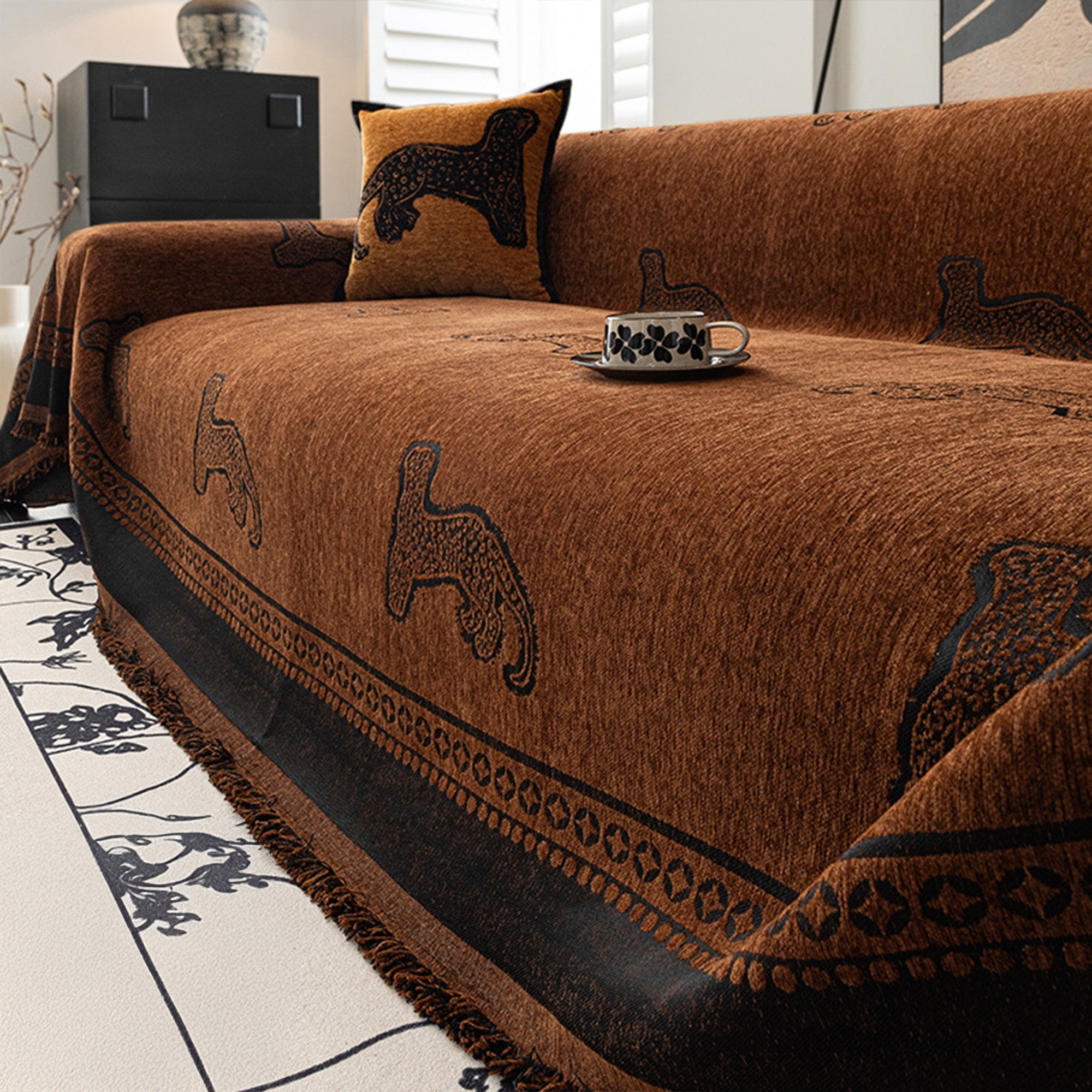 Chenille bankhoes met luipaardmotief – krasbestendig en wasbaar