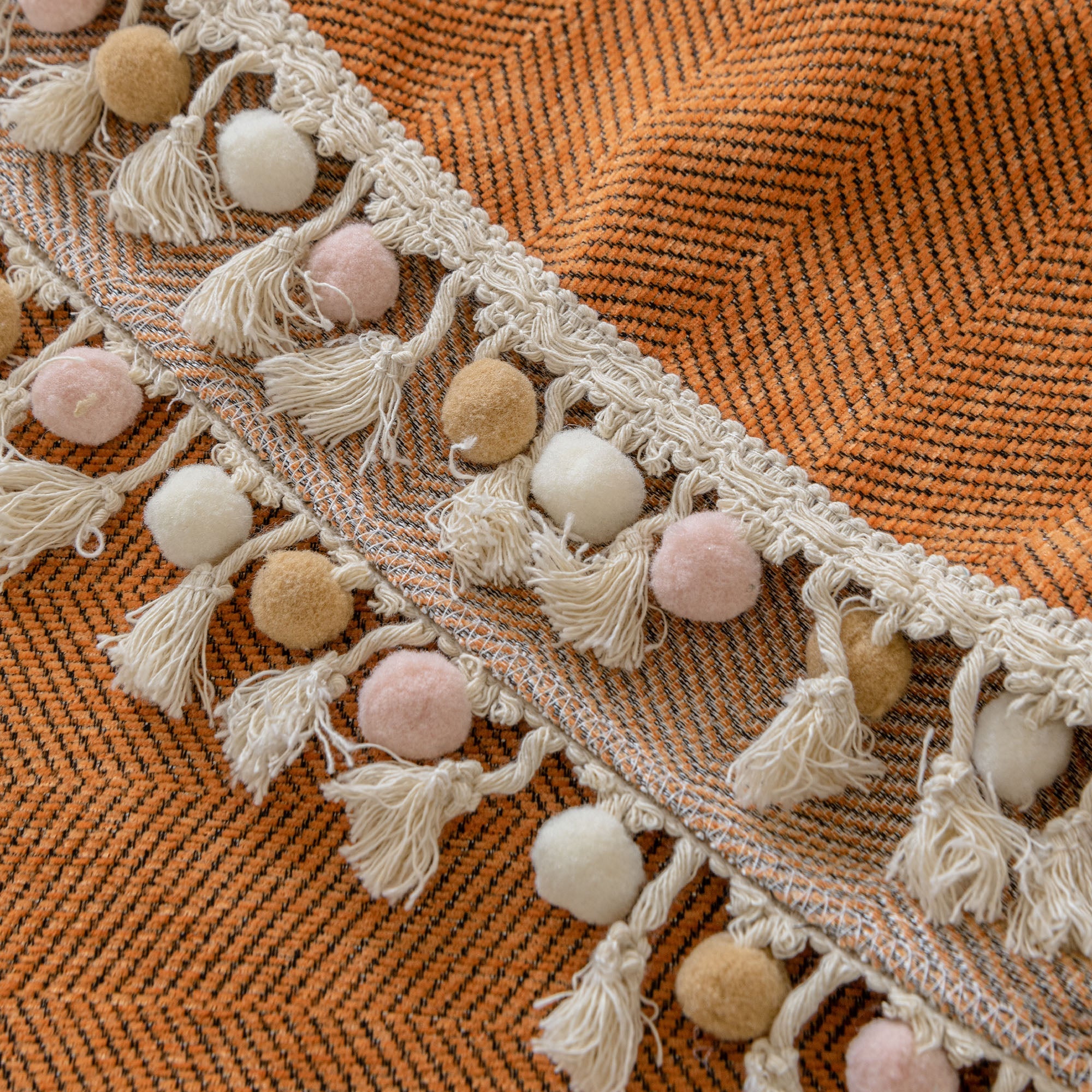 •Subtiel visgraatmotief met stijlvolle kwastjes voor een boho-geïnspireerde look.