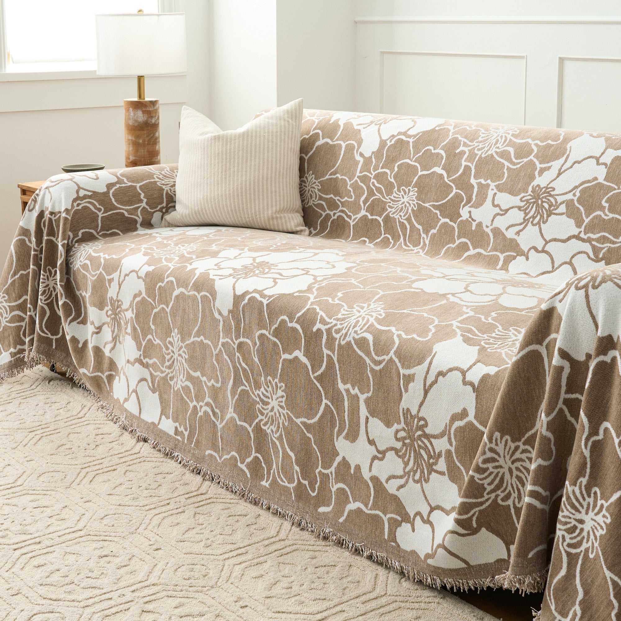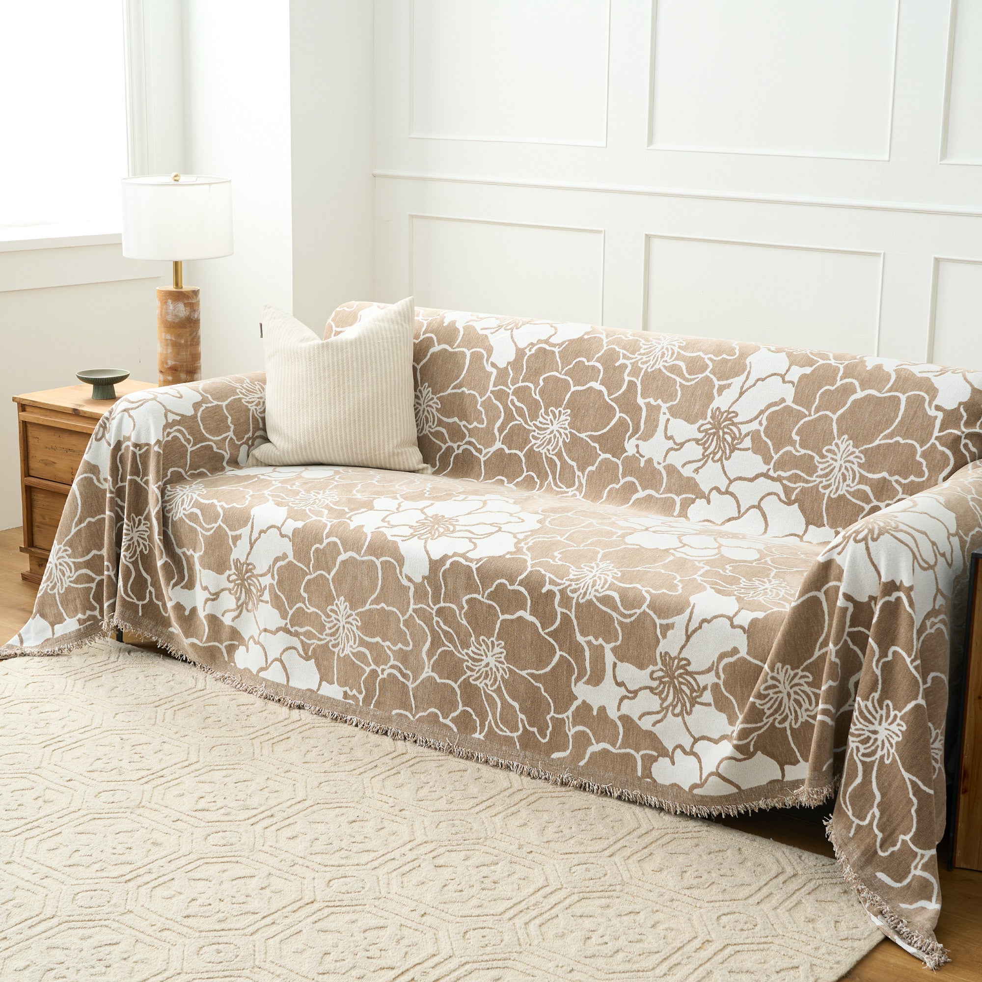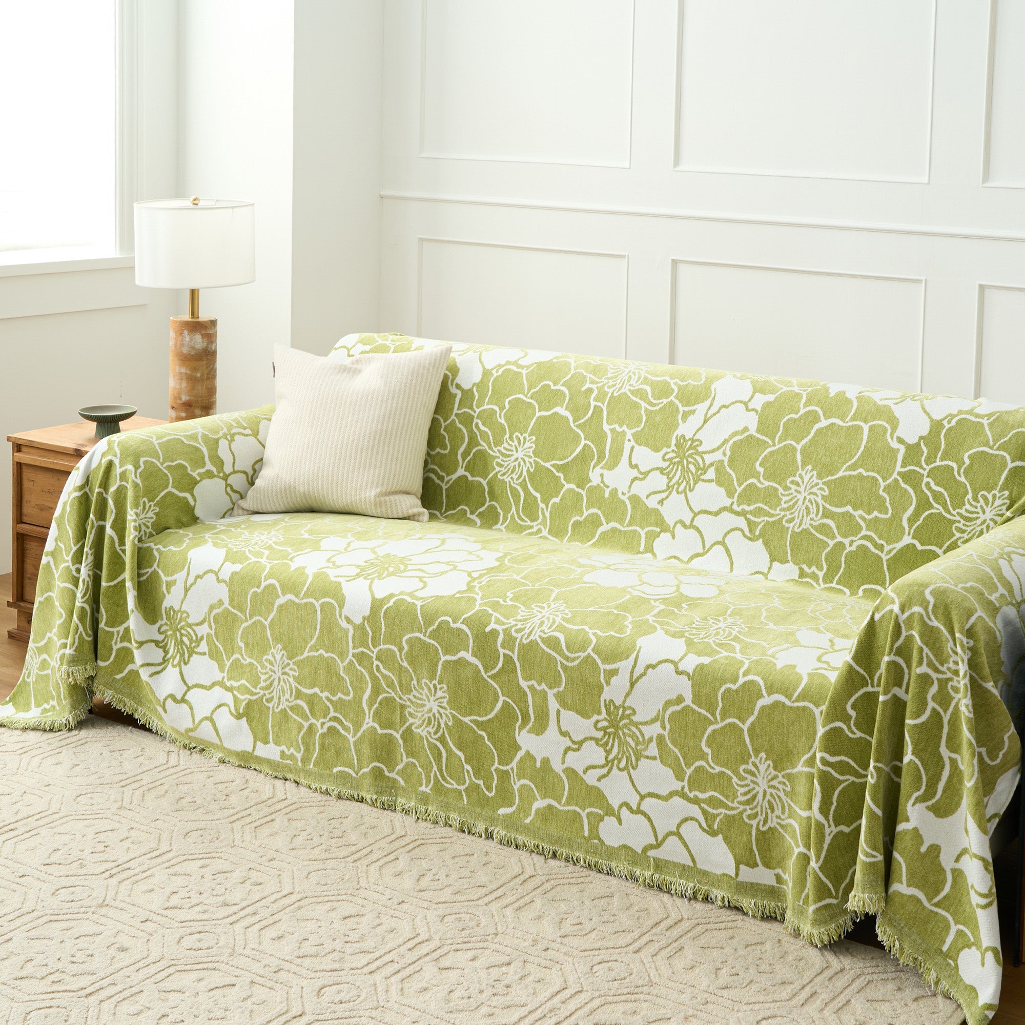Vul je leefruimte met de warmte van de zon met de Golden Bloom bankhoes. Met een prachtig bloemenmotief in stralend gele tinten verhoogt deze hoes moeiteloos de charme van je bank en beschermt deze tegen dagelijkse slijtage. De verfijnde franjes zorgen voor een verfijnde touch en vormen zo de perfecte mix van functionaliteit en elegantie.