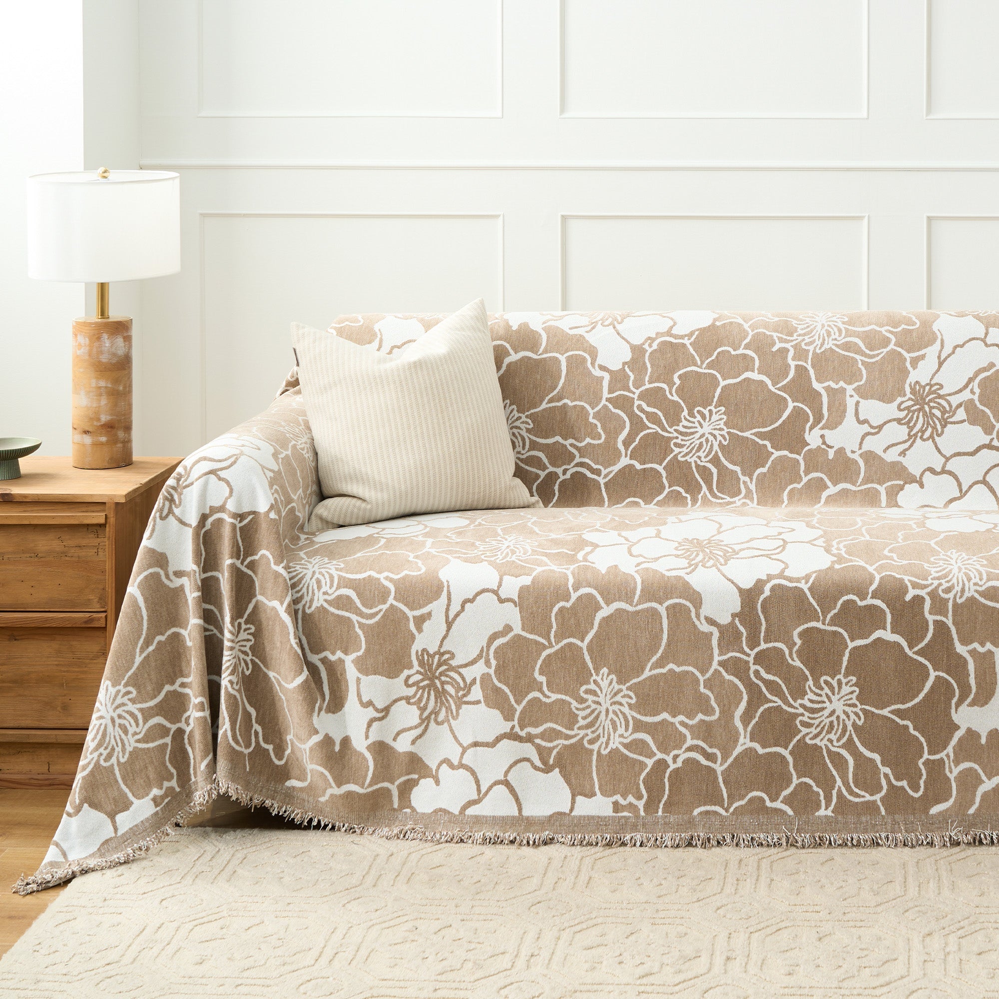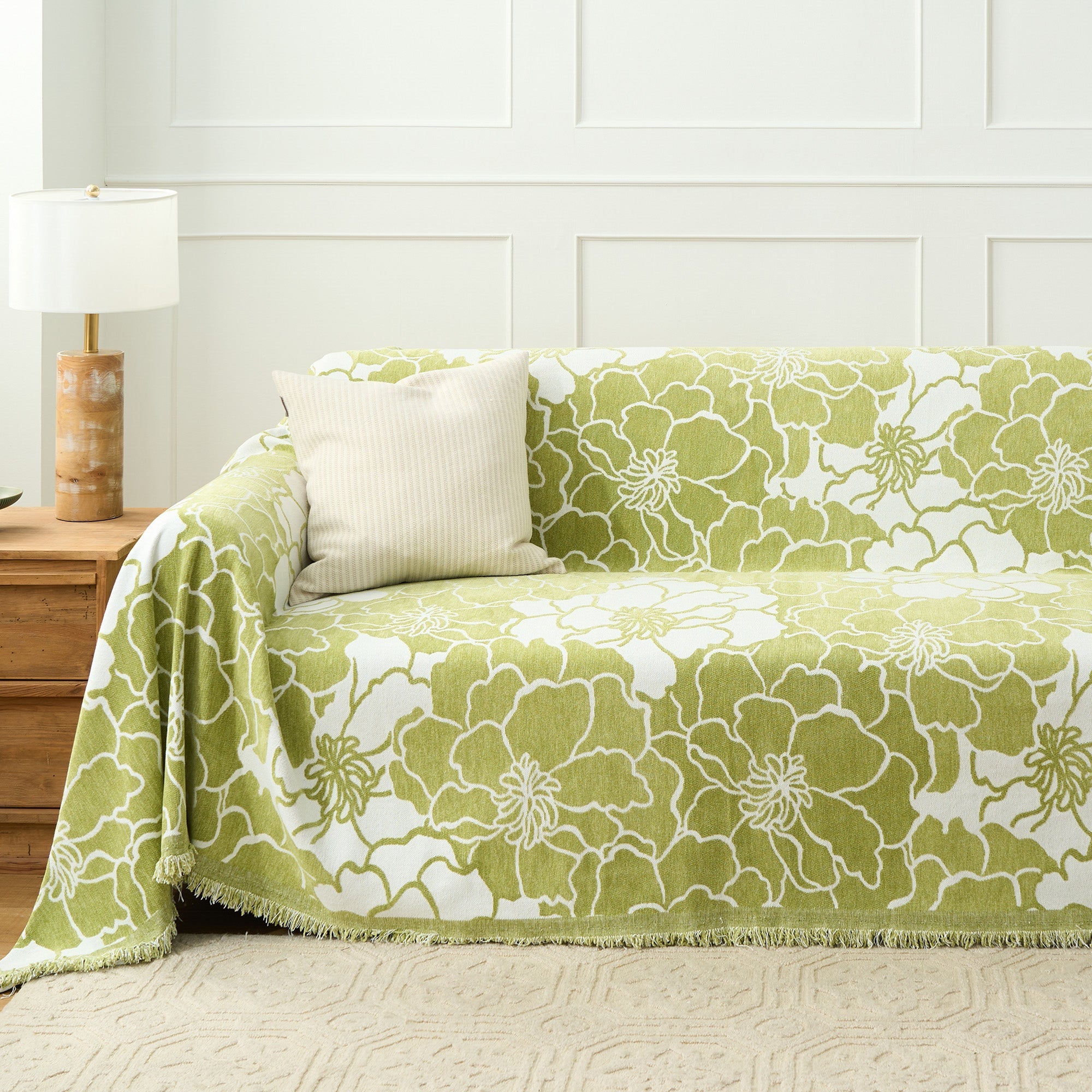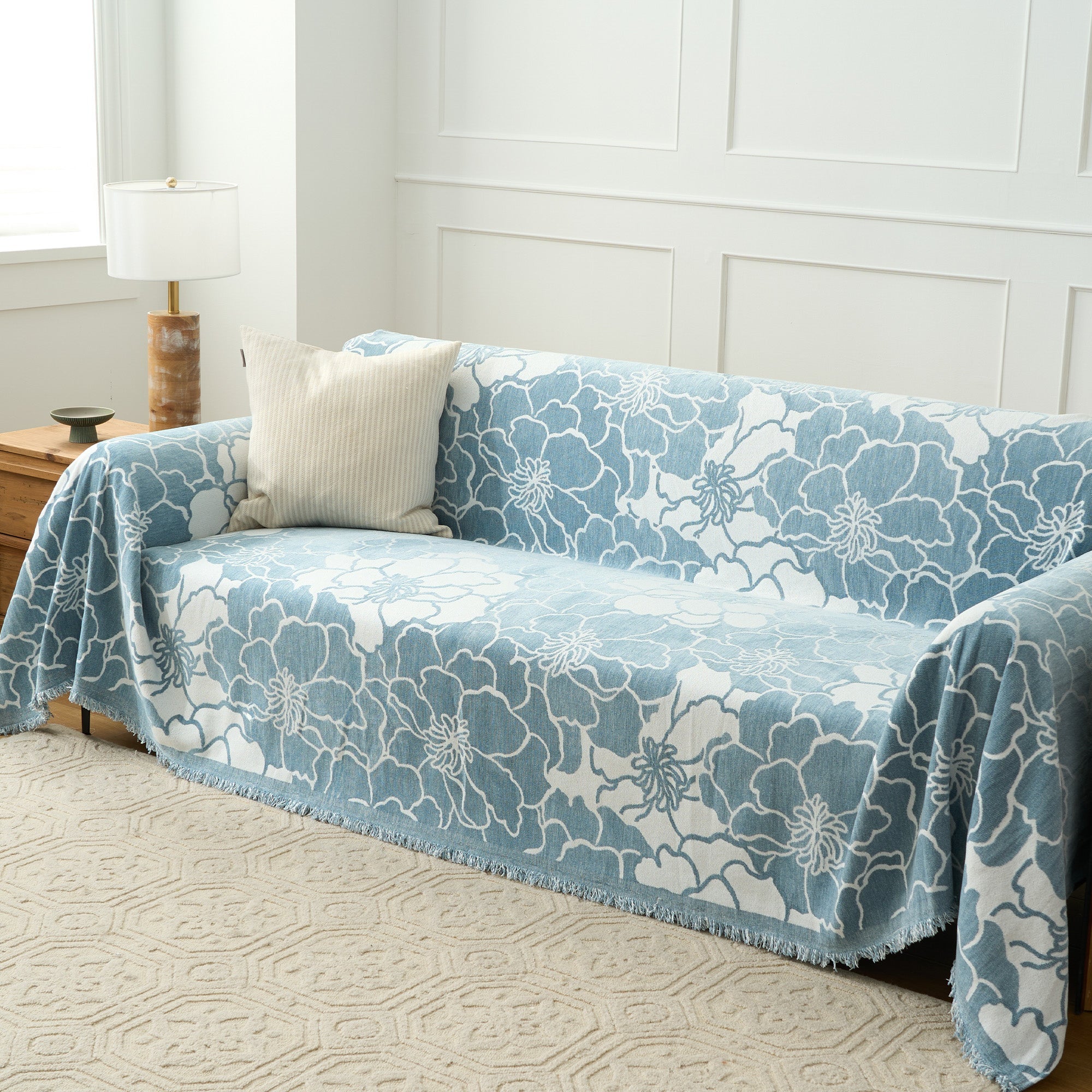Vul je leefruimte met de warmte van de zon met de Golden Bloom bankhoes. Met een prachtig bloemenmotief in stralend gele tinten verhoogt deze hoes moeiteloos de charme van je bank en beschermt deze tegen dagelijkse slijtage. De verfijnde franjes zorgen voor een verfijnde touch en vormen zo de perfecte mix van functionaliteit en elegantie.