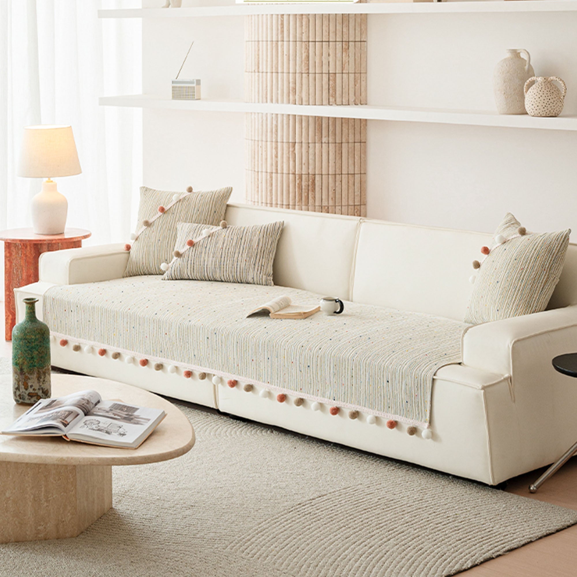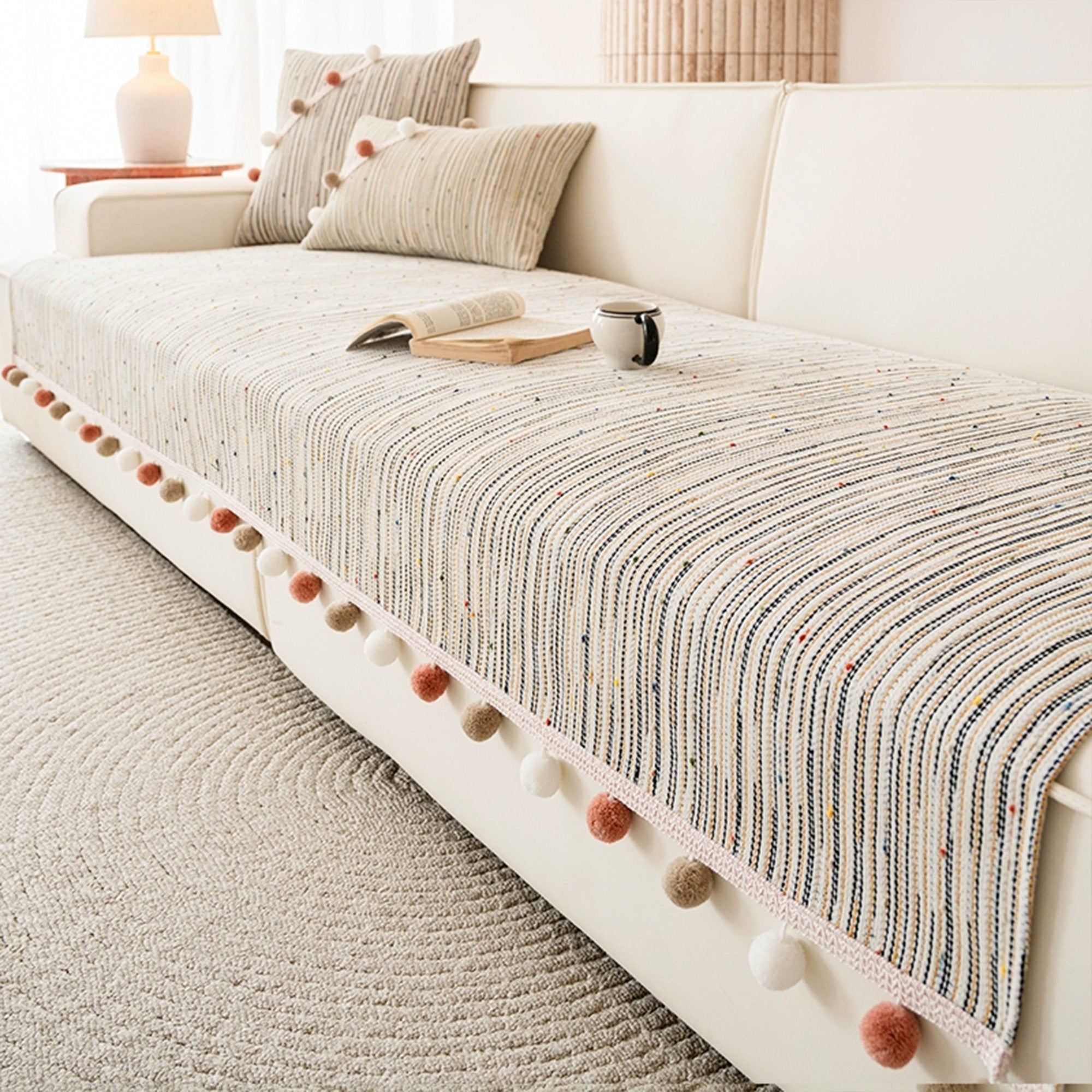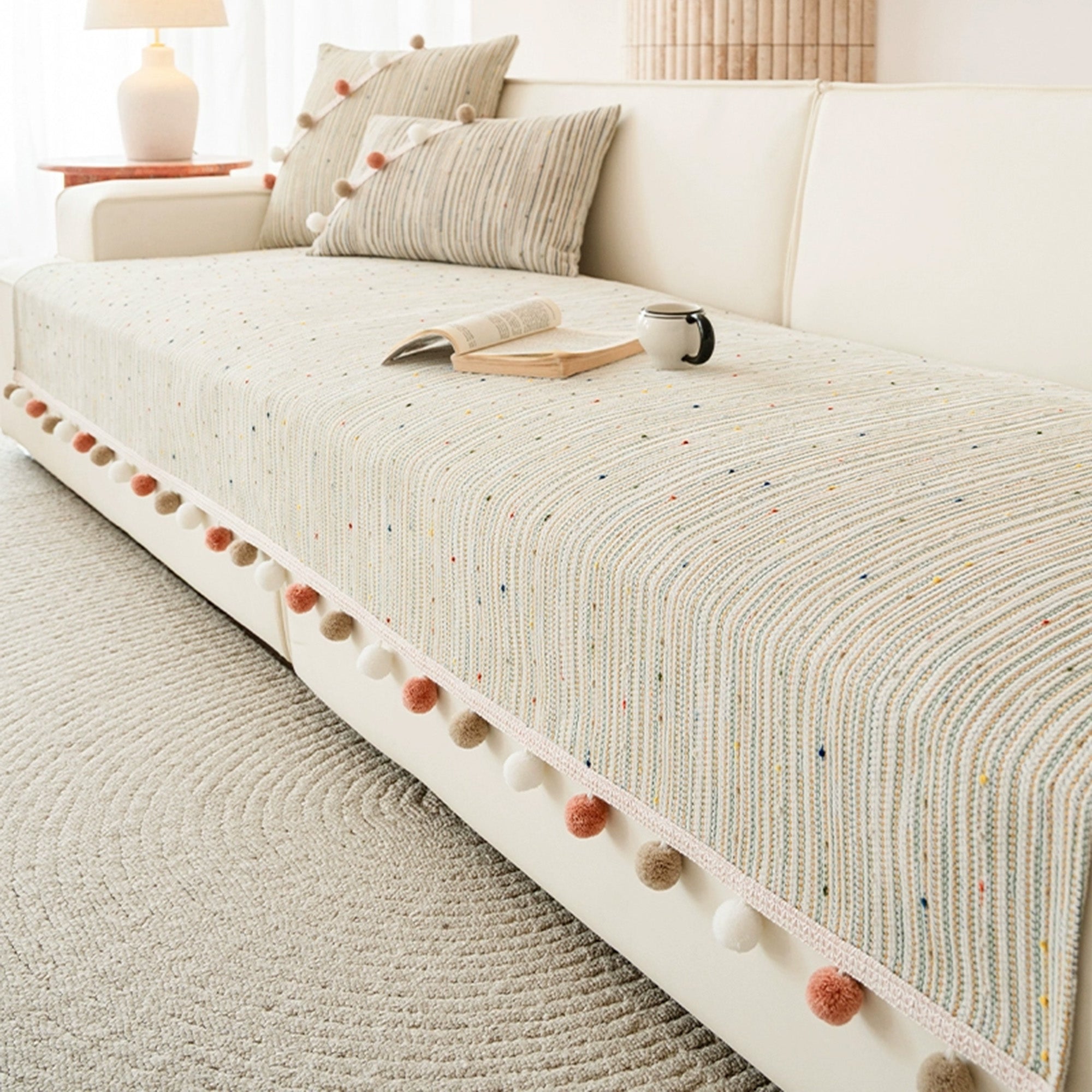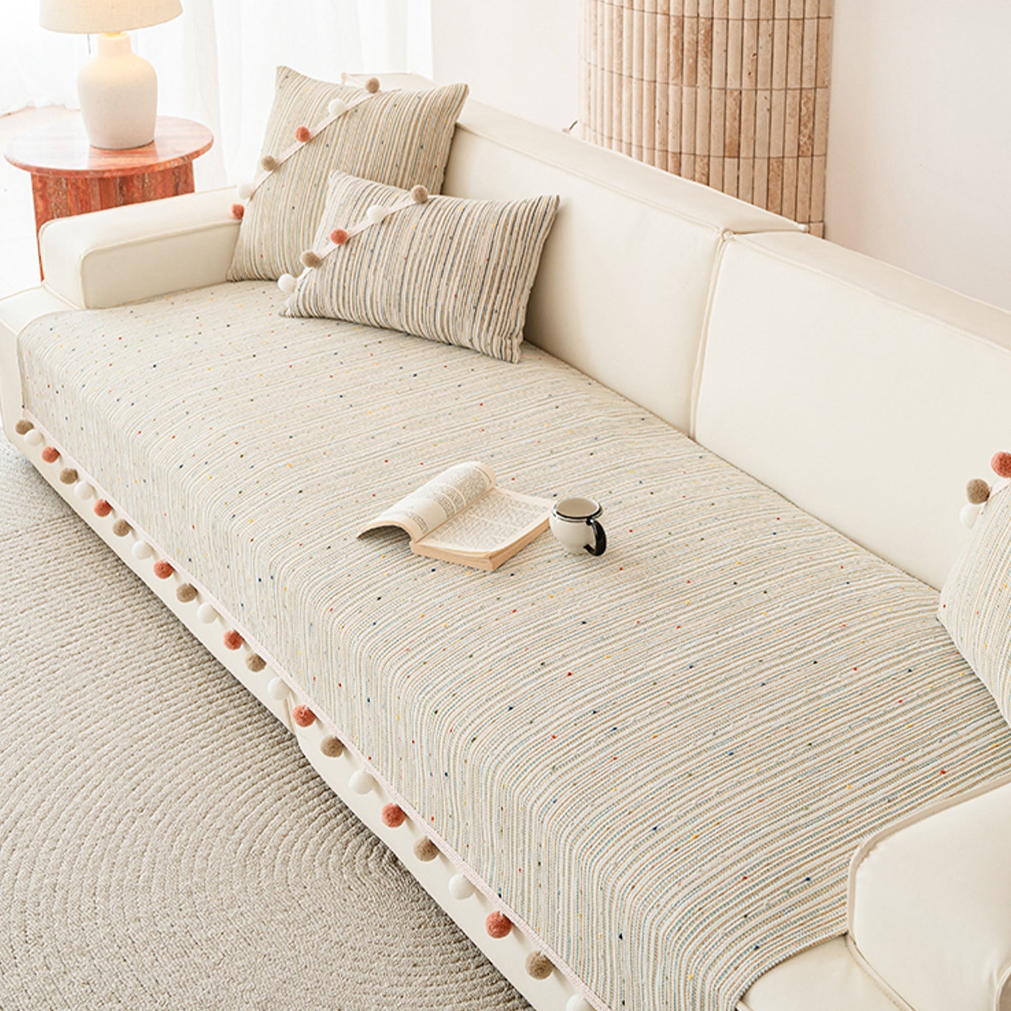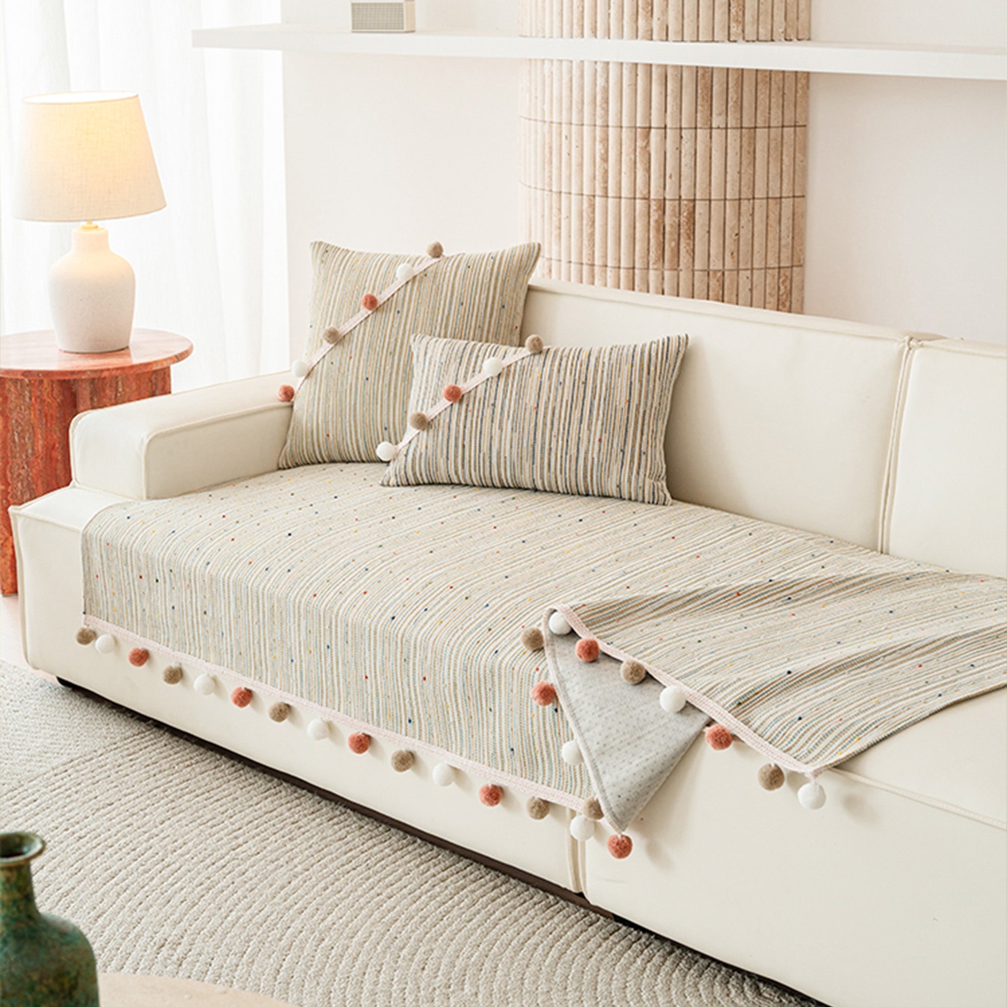 Voeg een vleugje speelse elegantie en knus comfort toe aan je huis met onze Playful Dots Chenille antislip bankhoes. Deze hoes, ontworpen met subtiele stippen en versierd met kleurrijke pompomranding, brengt vrolijkheid en charme in elke ruimte, zonder af te doen aan de elegantie. Gemaakt van duurzame, huisdiervriendelijke chenillestof, verfraait hij niet alleen je interieur, maar biedt hij ook betrouwbare bescherming tegen dagelijkse slijtage, krassen en dierenharen.