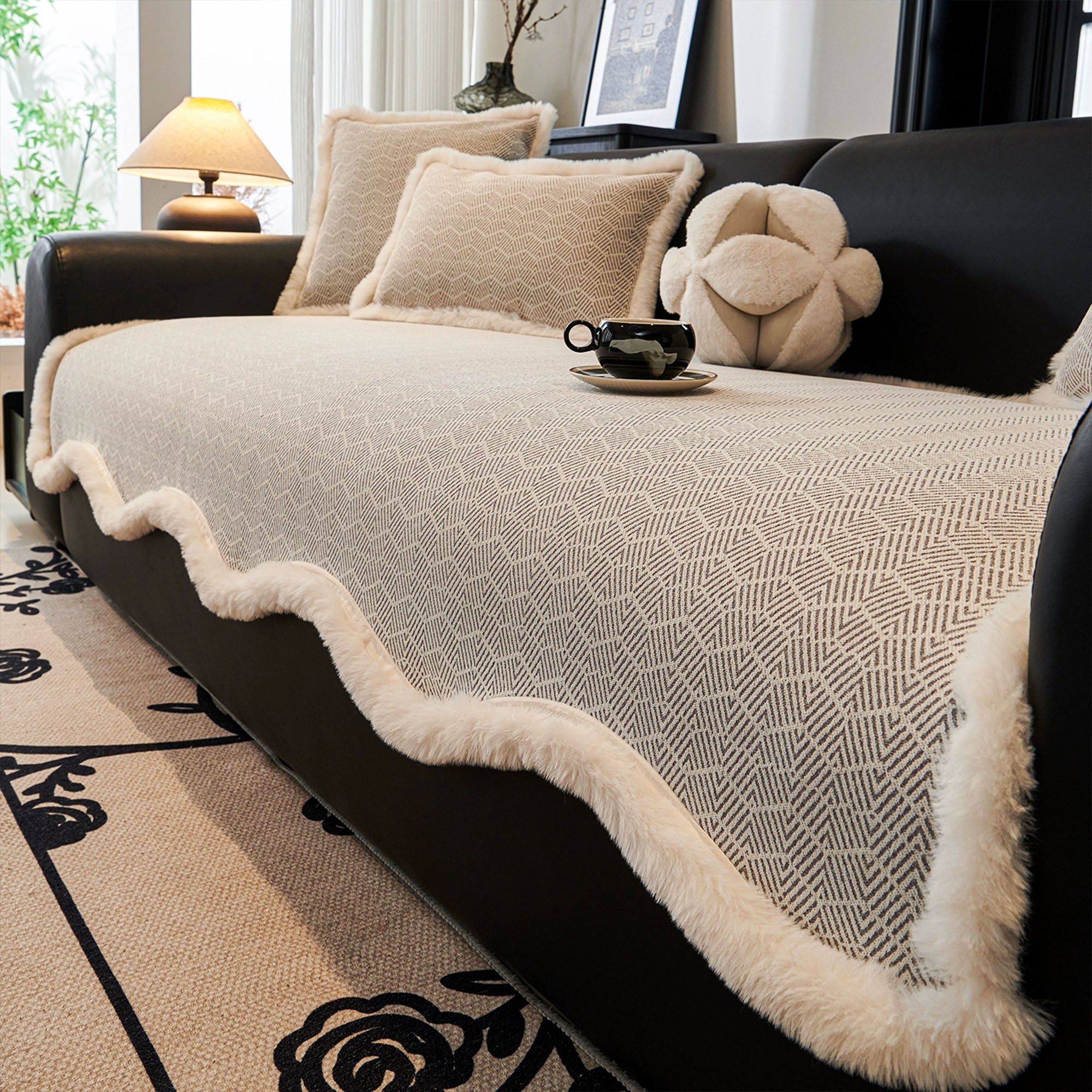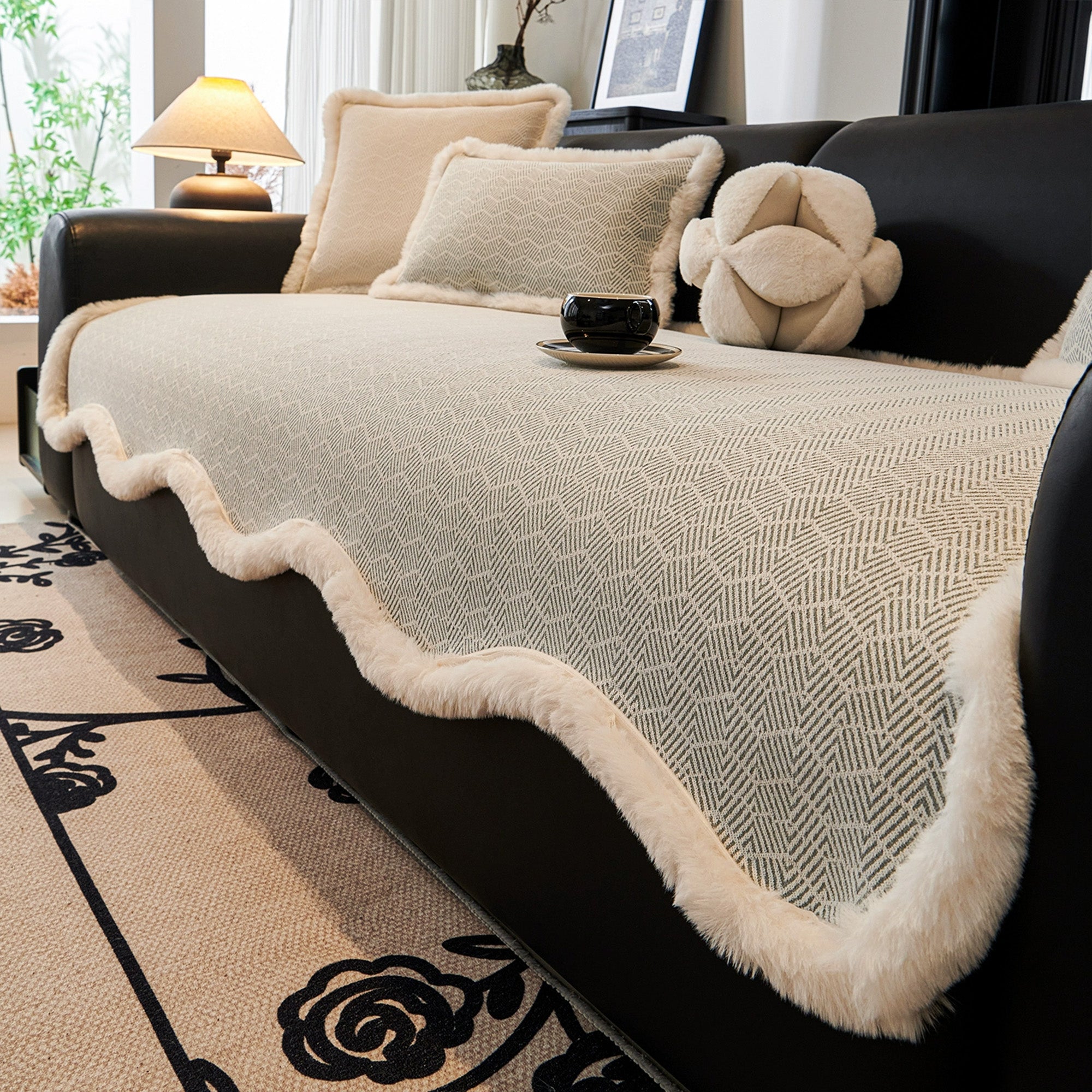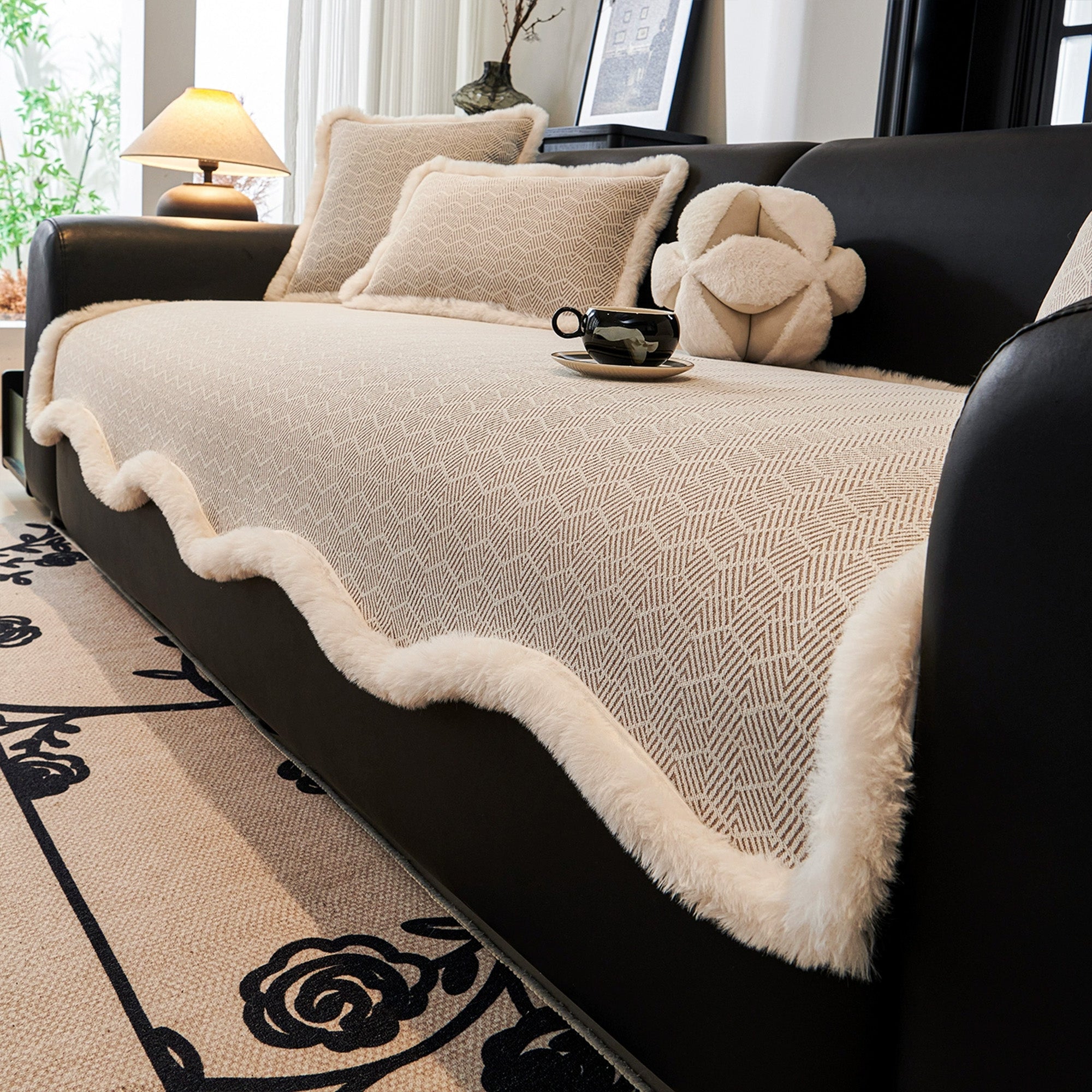Breng gezellige luxe en stijlvolle bescherming in uw woonkamer met de Plush Weave Faux Fur-Trim bankhoes. De elegante geweven textuur combineert prachtig met de zachte imitatiebont rand, wat zorgt voor een chique maar uitnodigende look. Deze hoes is ontworpen voor zowel esthetiek als functionaliteit en beschermt uw bank tegen dagelijkse slijtage, morsen en dierenharen, terwijl hij tegelijkertijd uw interieur verfraait.