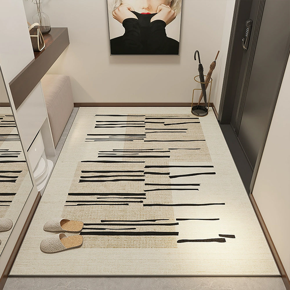Verfraai uw entree met deze moderne Brushstroke Gradient deurmat. De dichte, kortpolige polyester weeft strakke lijnen over een warme zandachtergrond en creëert een strakke, minimalistische look die vuil prachtig verbergt. Een antisliplaag houdt de mat stevig op zijn plaats, terwijl het vlekbestendige oppervlak bestand is tegen schoenen, morsen en huisdieren – perfect voor drukke gangen, foyers en appartementen.