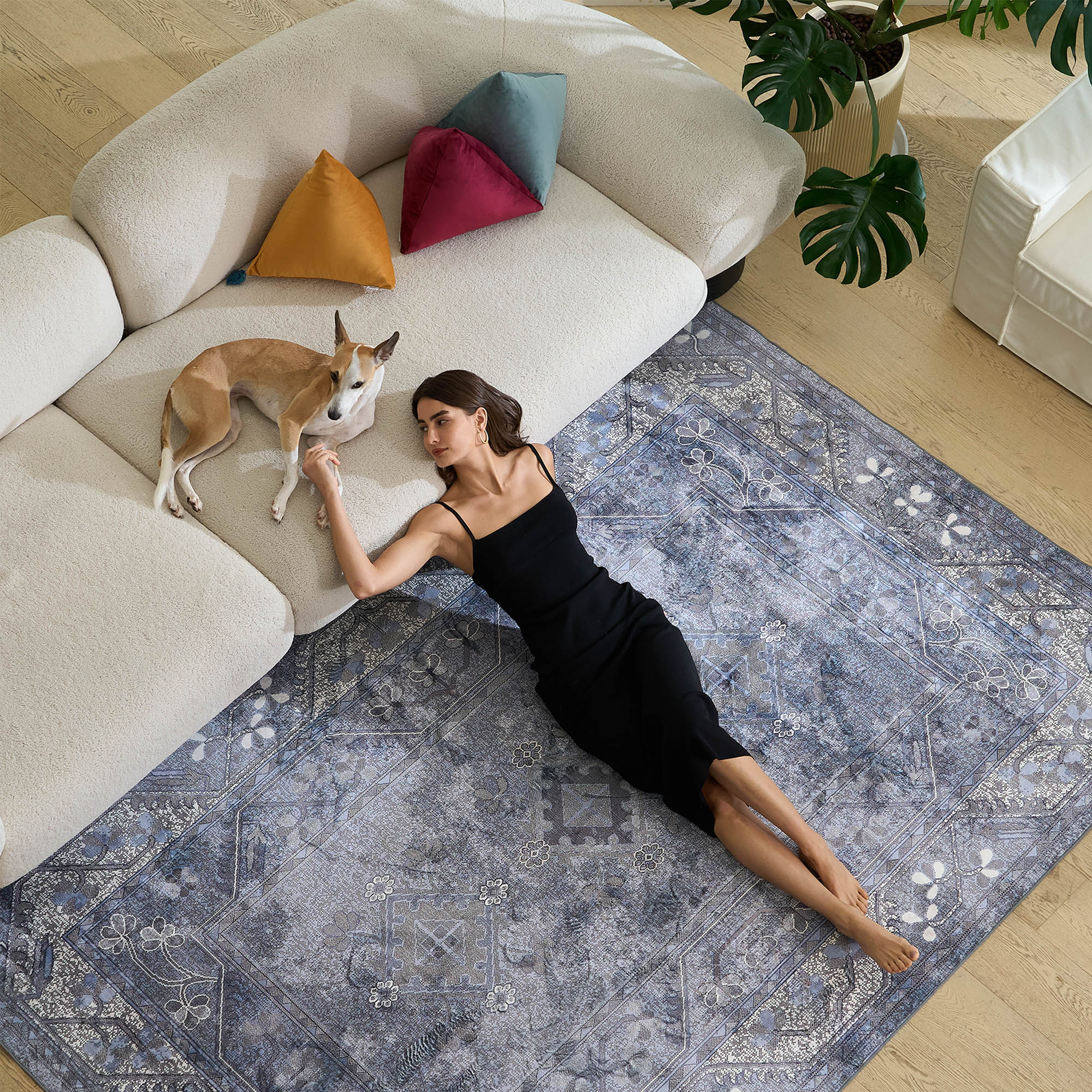 Eenvoudig te reinigen vloerkleed in klassieke Perzische stijl, geschikt voor huisdieren in de woonkamer