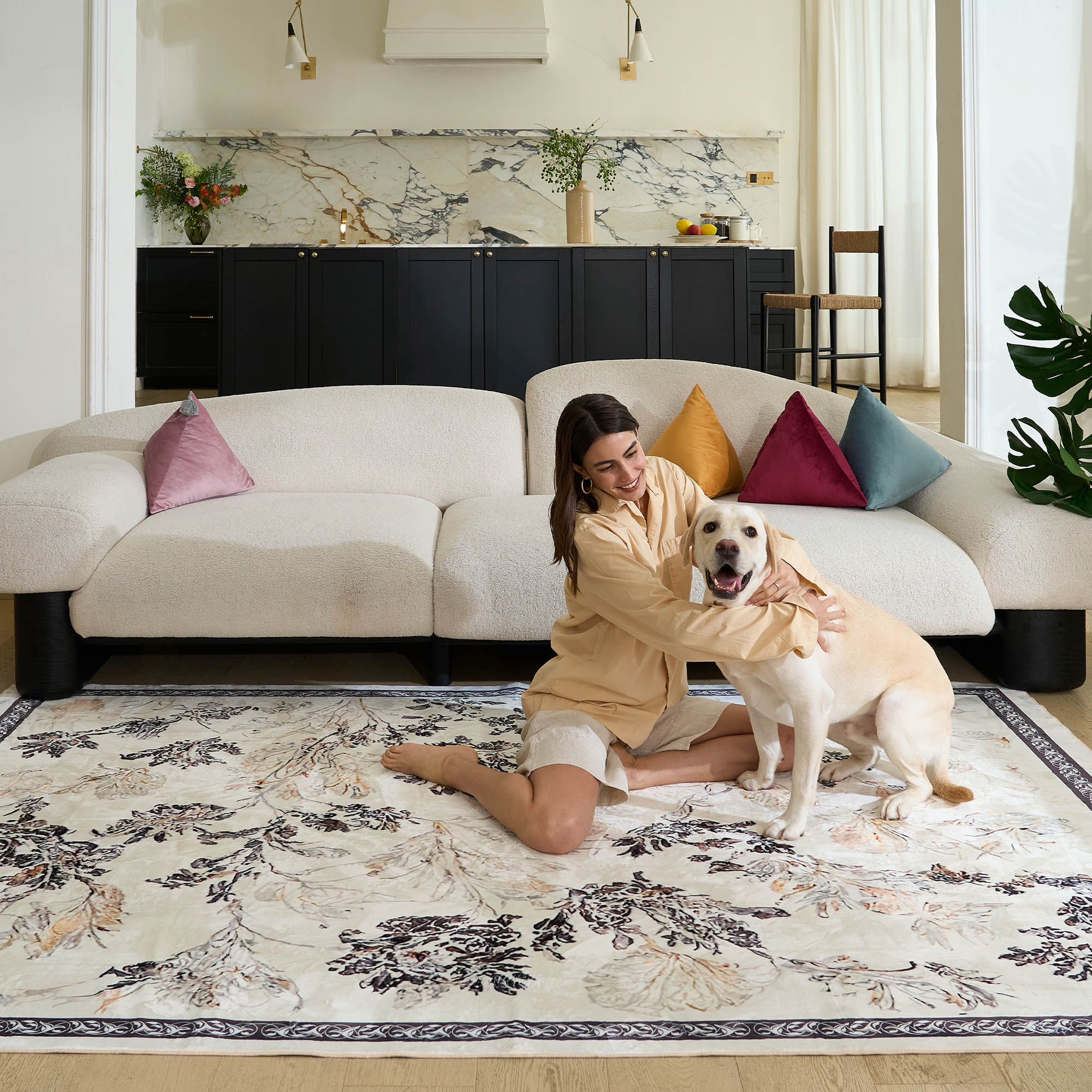 Haal een nieuw niveau van verfijning in huis met ons waterdichte, lichtgewicht Garden Grace vloerkleed! Ontworpen met zowel stijl als functionaliteit in gedachten, is dit vloerkleed de perfecte aanvulling voor dierenliefhebbers die een chique en diervriendelijke woning willen. Of het nu in de woonkamer, slaapkamer of hal is, dit vloerkleed voegt een vleugje elegantie toe en biedt ultiem comfort voor jou en je harige vrienden. Het comfortabele gevoel is perfect voor zowel huisdieren als mensen, waardoor het een favoriete plek is voor je harige vrienden om te dutten terwijl jij met ze ontspant.