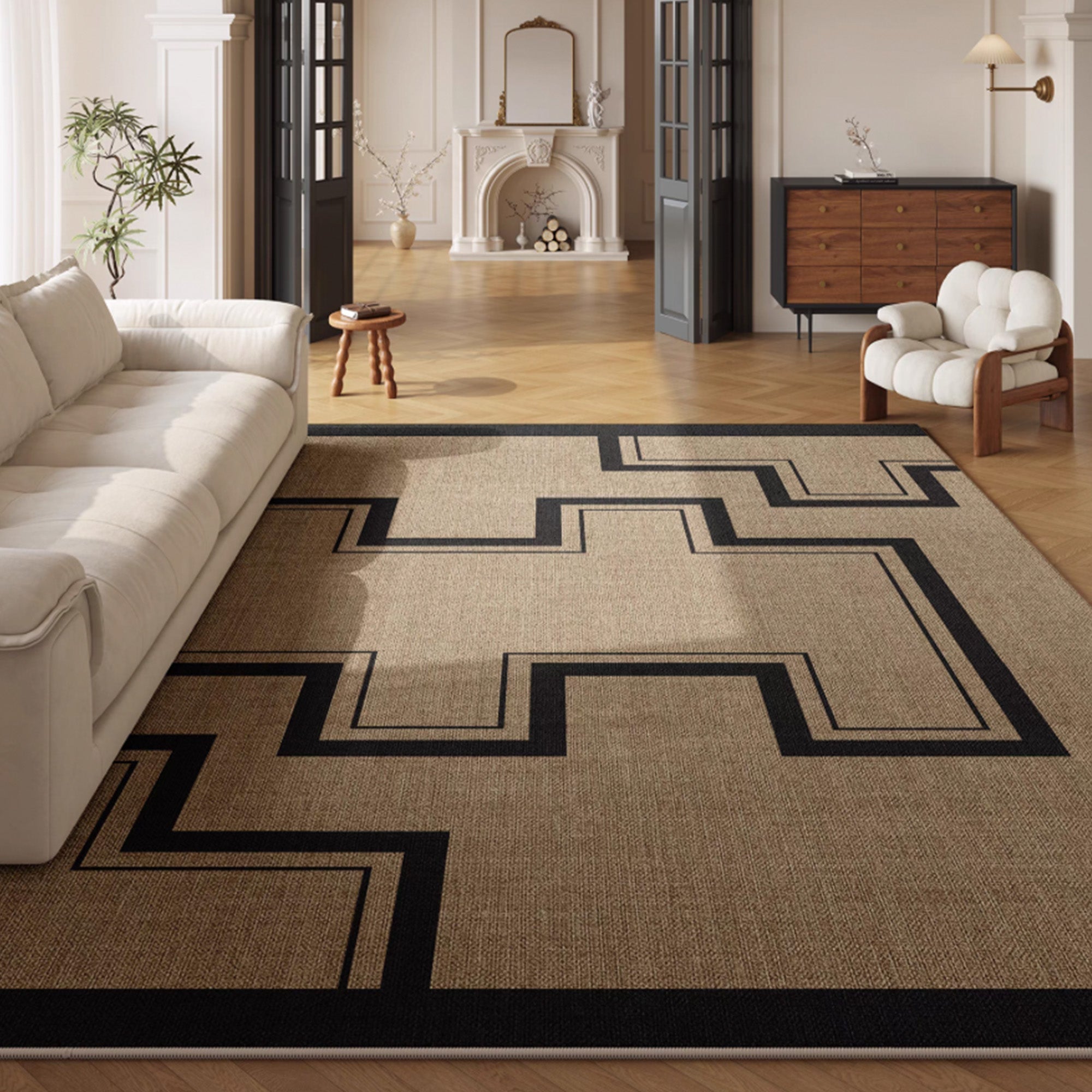 •Opvallend, zwart geometrisch doolhofontwerp op een warme neutrale achtergrond