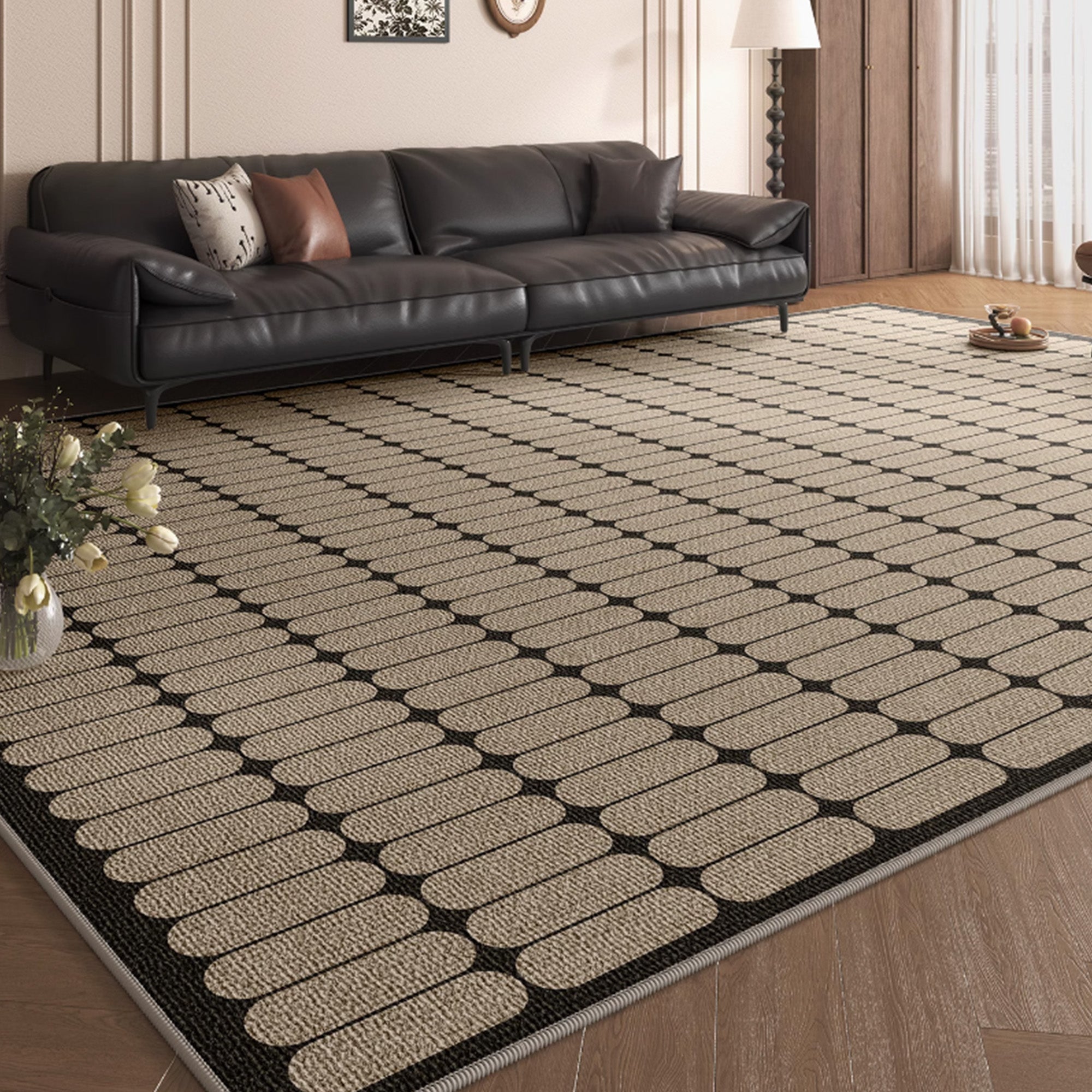 Gemakkelijk schoon te maken vloerkleed, modern ovaal raster, morsbestendig, huisdiervriendelijk, geometrisch, pluche vloerkleed voor de woonkamer