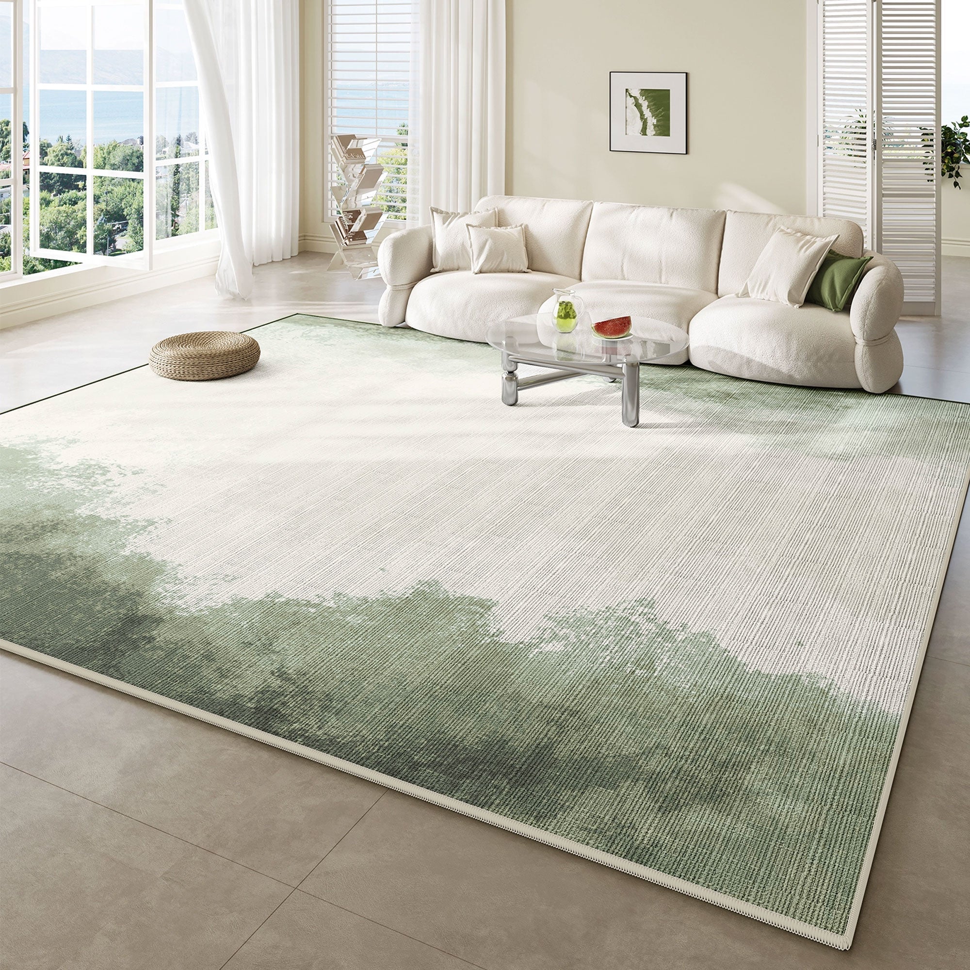 Gemakkelijk schoon te maken tapijt Verdant Whispers morsbestendig huisdiervriendelijk minimalistisch vloerkleed voor de woonkamer