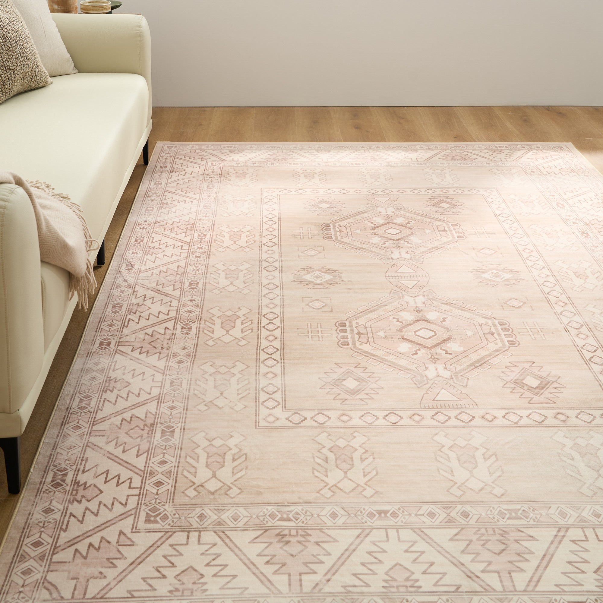 Gemakkelijk schoon te maken, wasbaar tapijt, Boho Geometrisch, rustiek woestijnontwerp, duurzaam, morsbestendig, huisdiervriendelijk, antislipmat voor de woonkamer