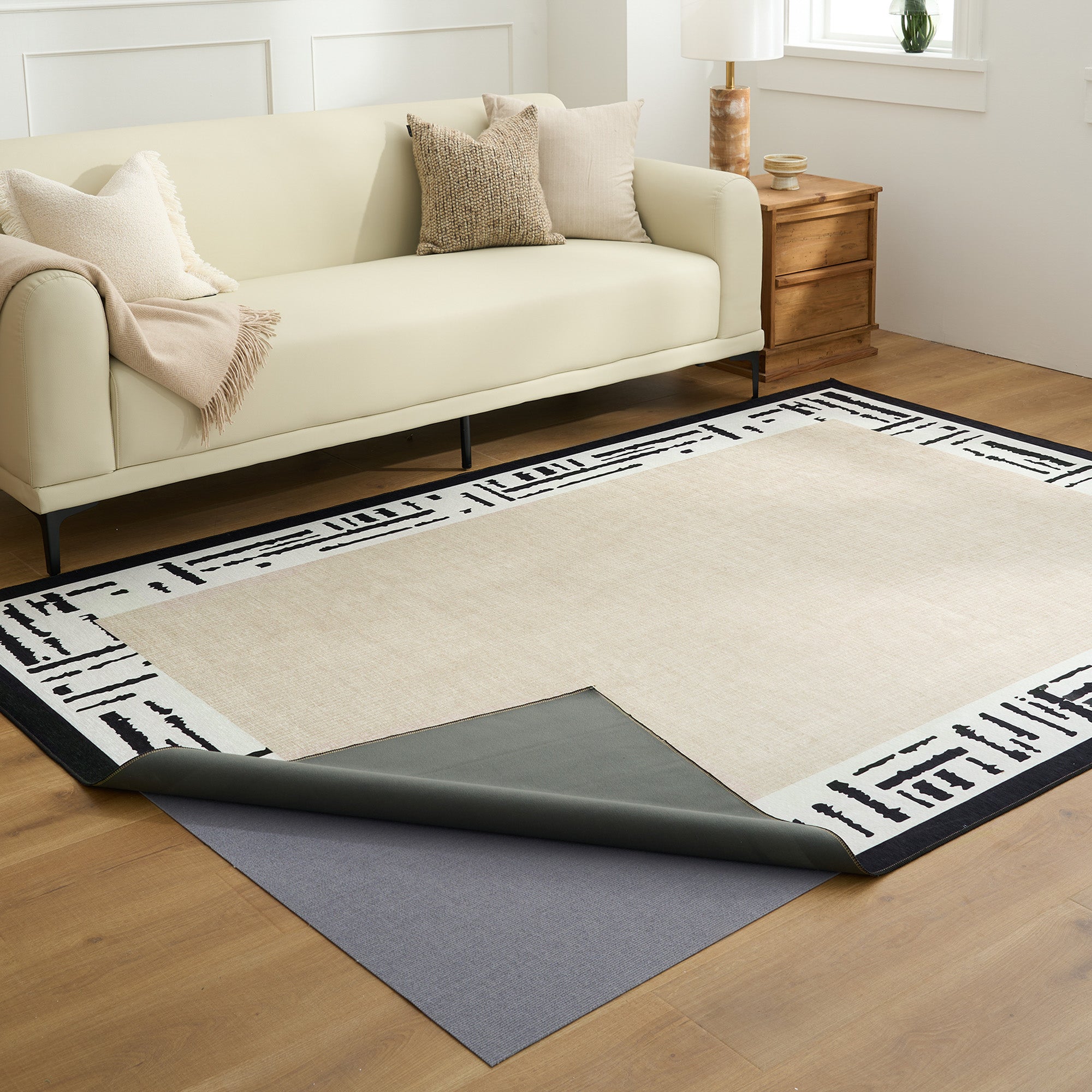 •Uitneembare onderlegger voor extra bescherming: beschermt zowel uw vloer als het tapijt zelf. Deze onderlegger is gemakkelijk te wassen en zorgt voor een langdurige, frisse uitstraling, zelfs in huizen met veel verkeer en harige vrienden.