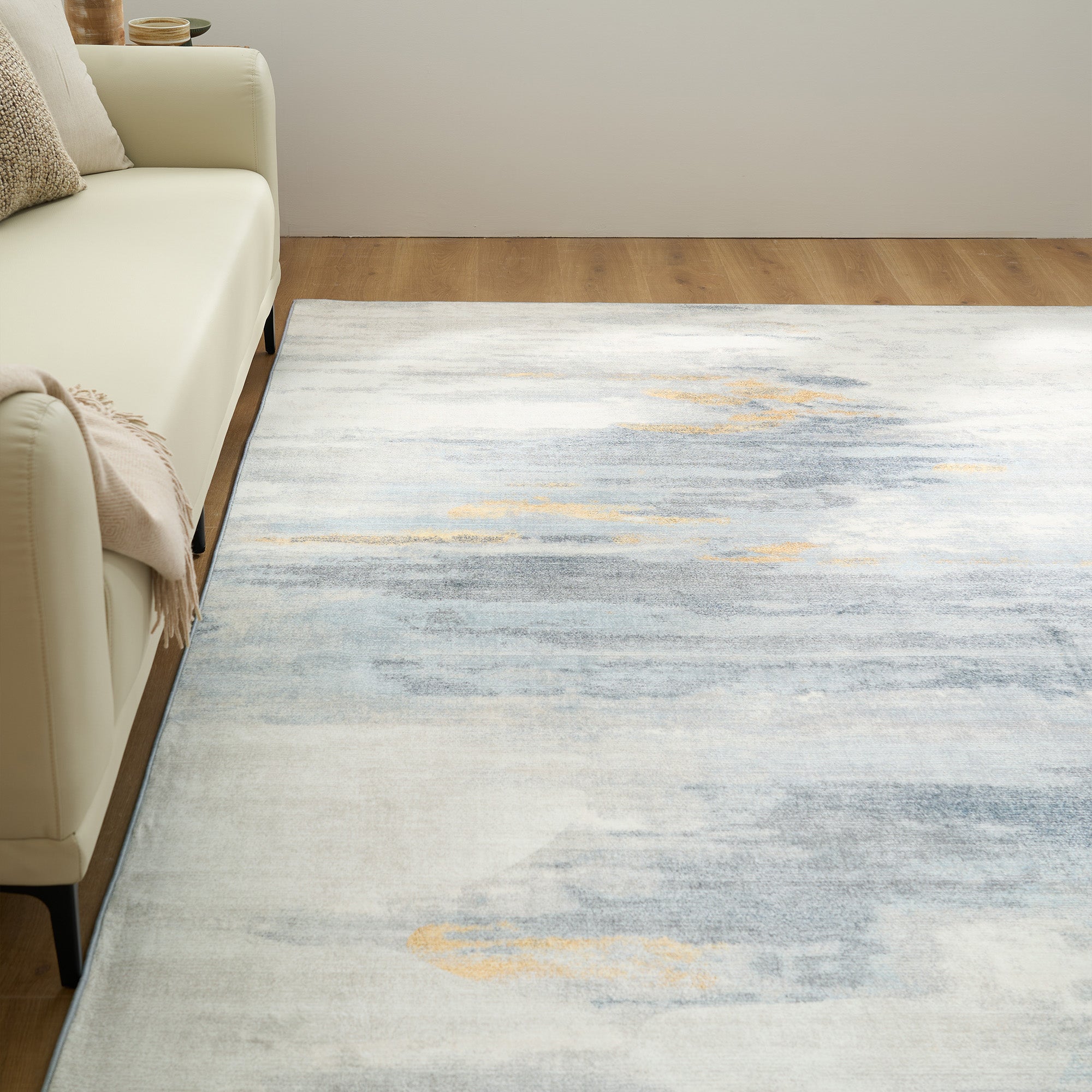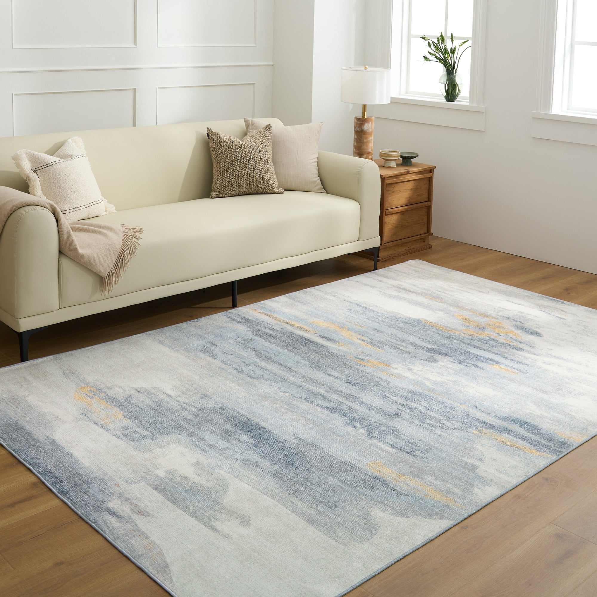 Gemakkelijk schoon te maken, wasbaar vloerkleed, modern abstract, neutraal geborsteld ontwerp, duurzaam, morsbestendig, huisdiervriendelijk, antislipmat voor de woonkamer