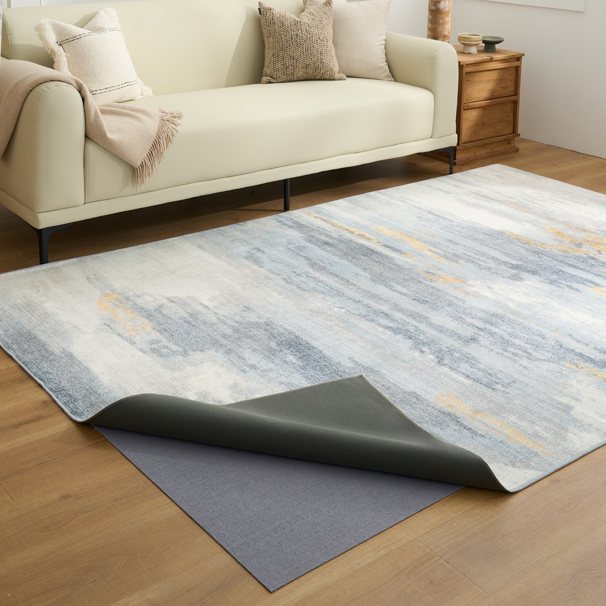 •Probleemloze plaatsing: Leg eerst de mat neer en lijn vervolgens de tapijthoes uit zodat deze overeenkomt met de breedte voor een perfecte pasvorm. Dankzij een speciaal verbindingsproces blijven het tapijt en de mat stevig op hun plaats zonder te verschuiven – geen ingewikkelde installatie vereist.