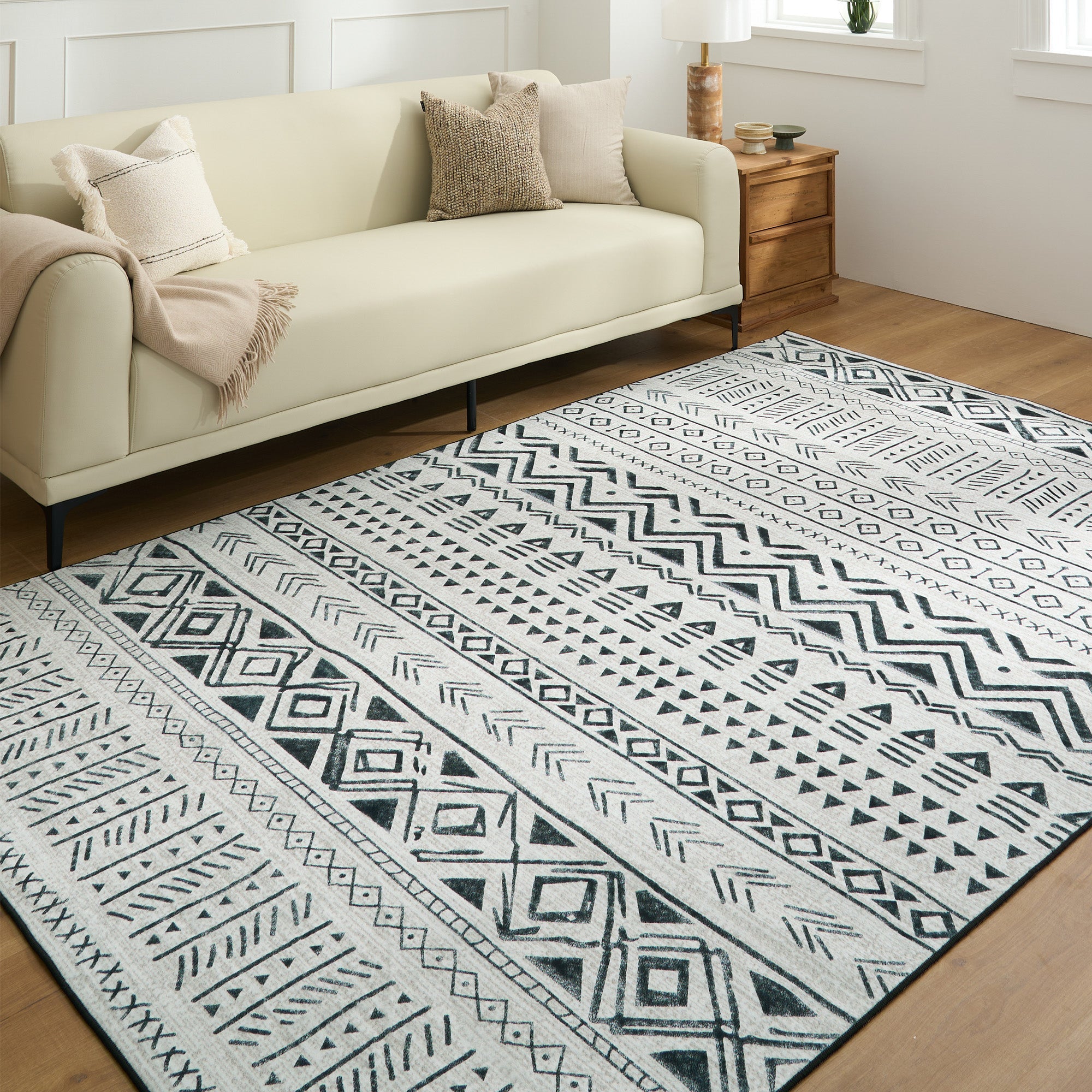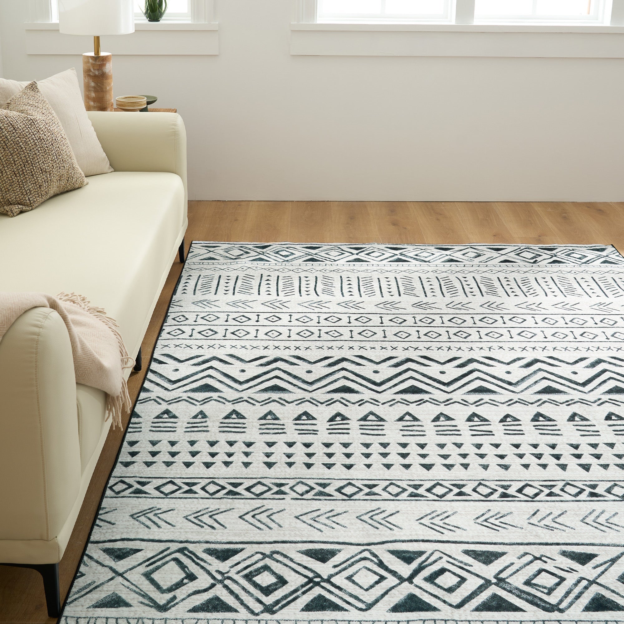 Gemakkelijk schoon te maken, wasbaar vloerkleed met modern tribal middernachtelijk ontwerp, duurzaam, morsbestendig, huisdiervriendelijk, antislipmat voor de woonkamer