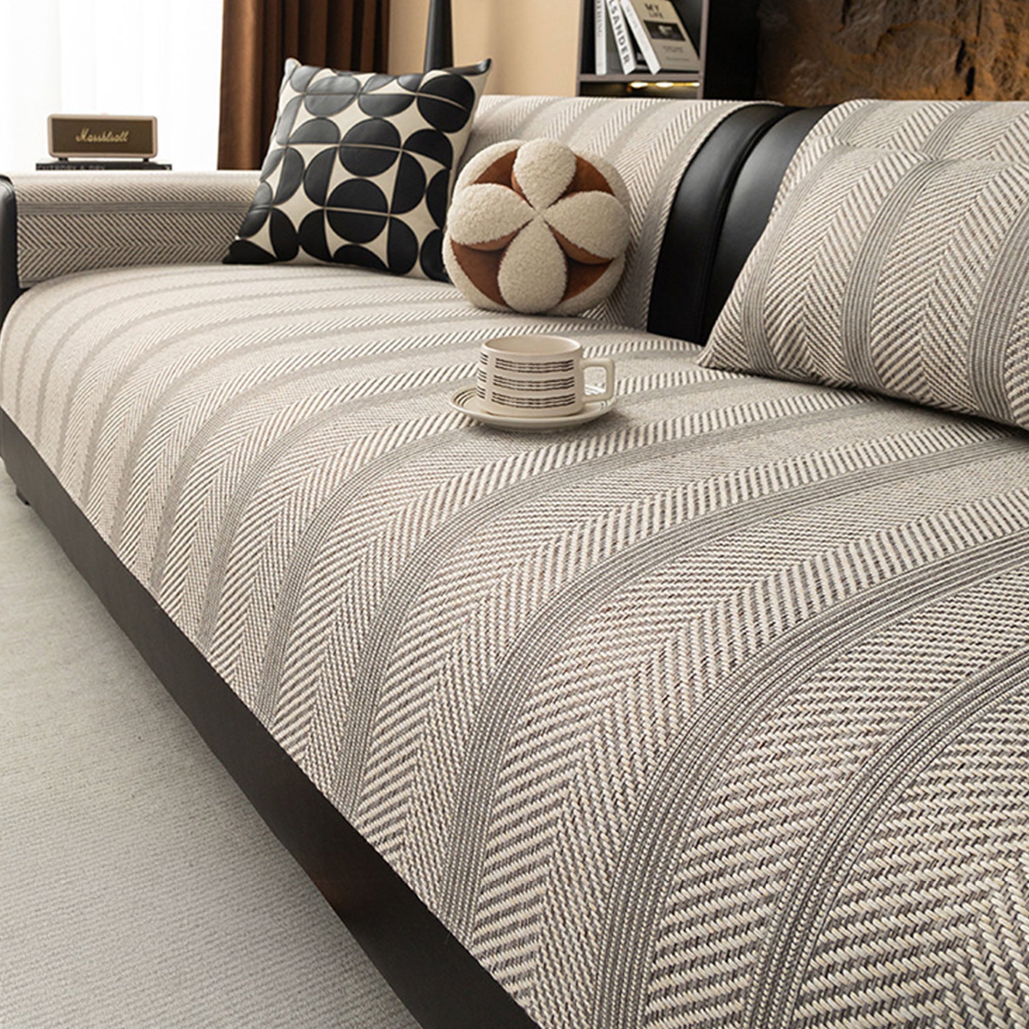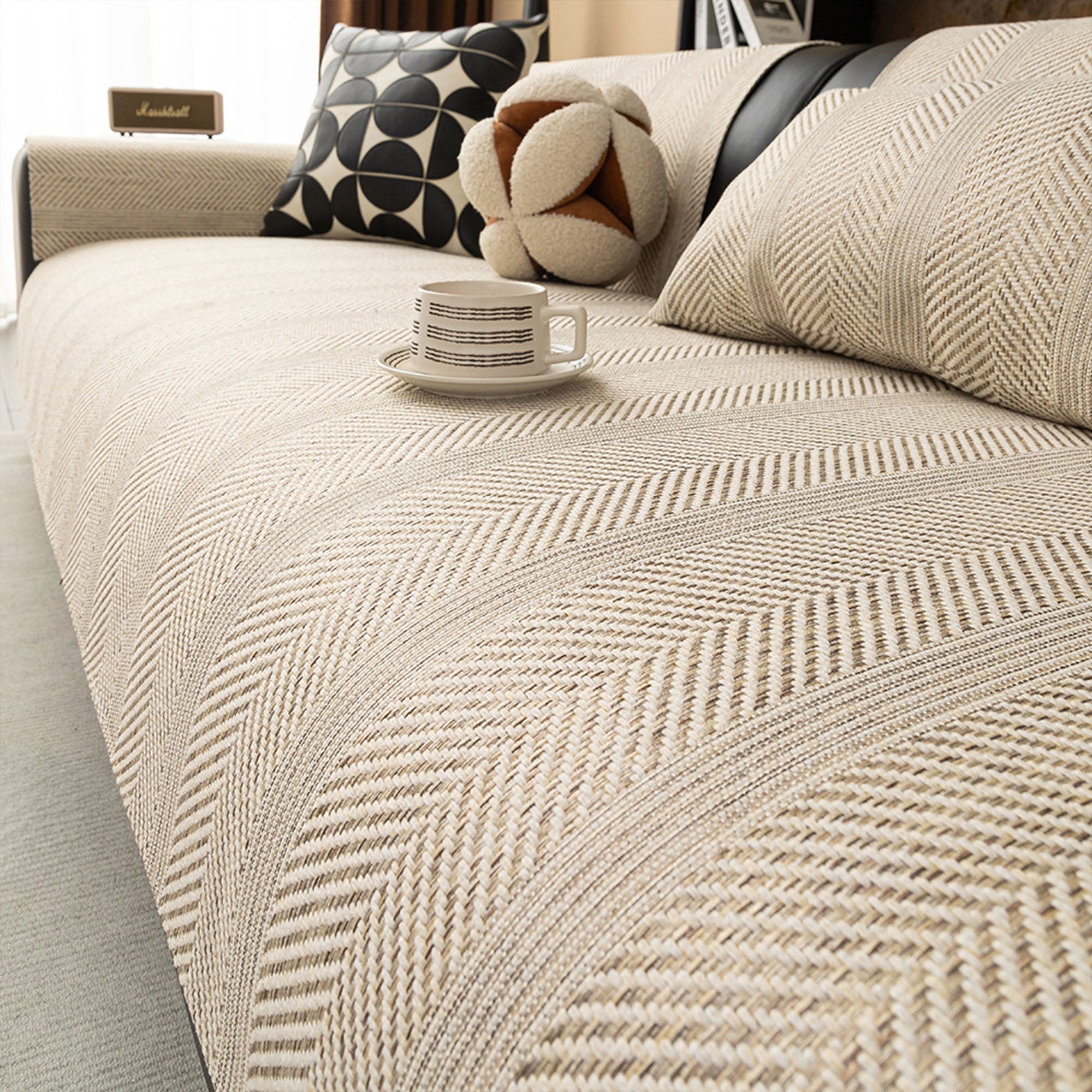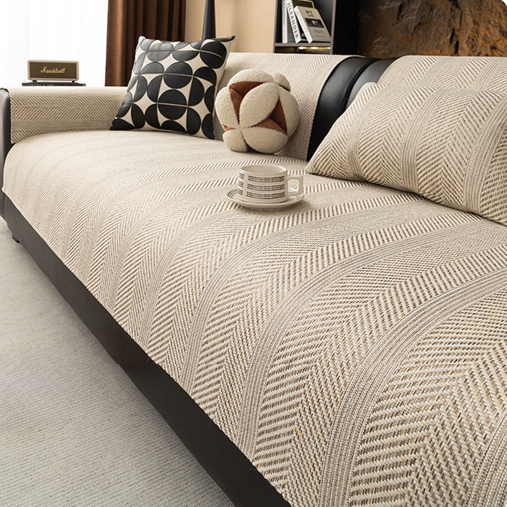 Verfris je woonkamer met de moderne antislip bankhoes met visgraatmotief van imitatielinnen. De subtiele visgraatstrepen en verfijnde linnenlook geven elke ruimte een strakke, moderne uitstraling en beschermen je bank tegen dagelijkse slijtage.