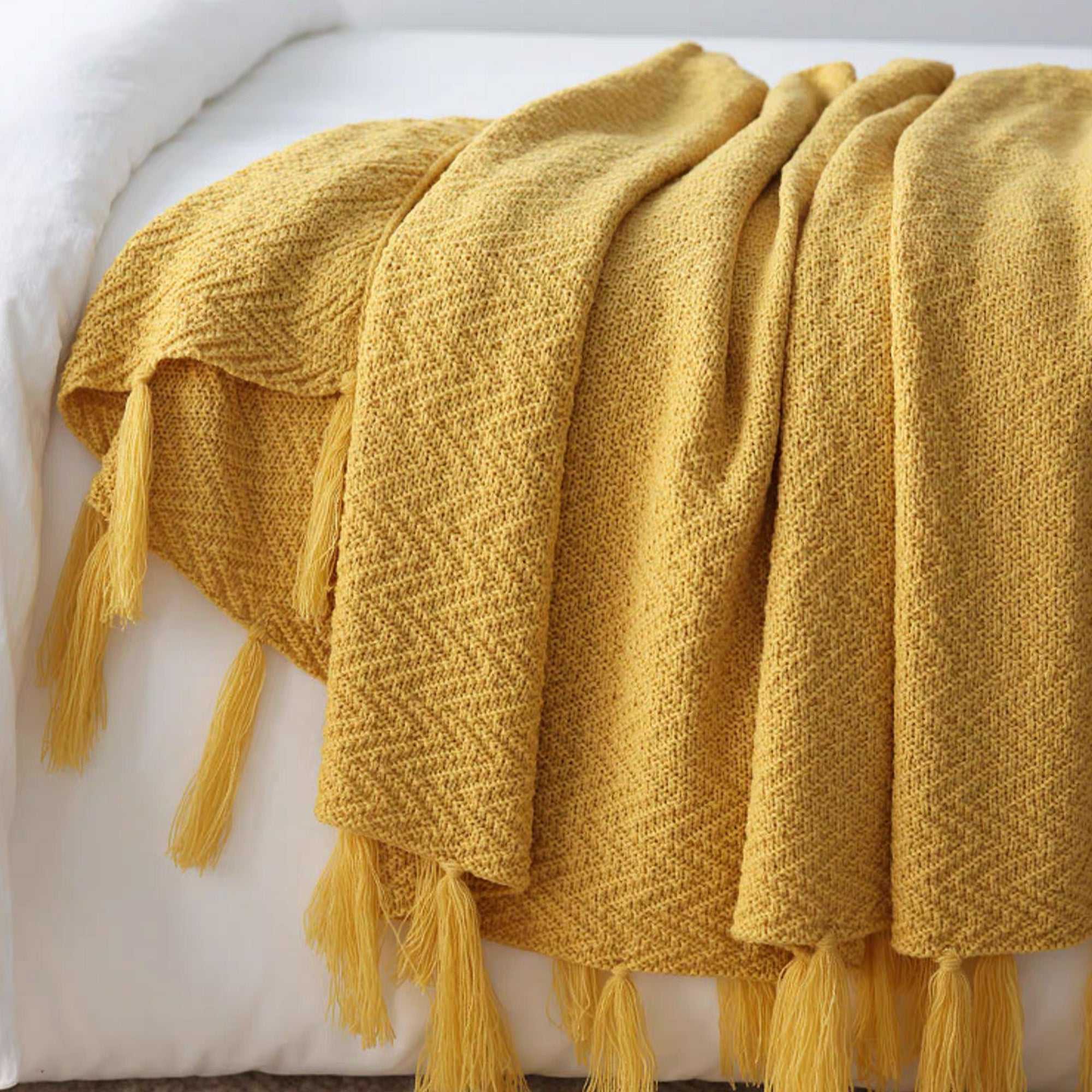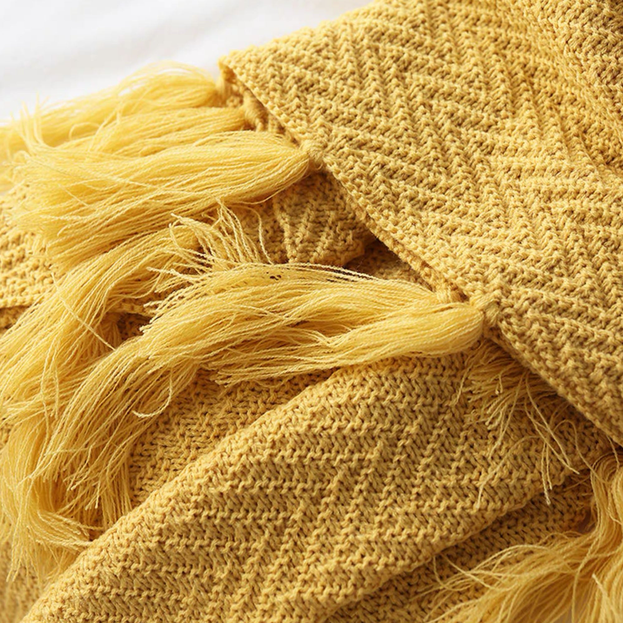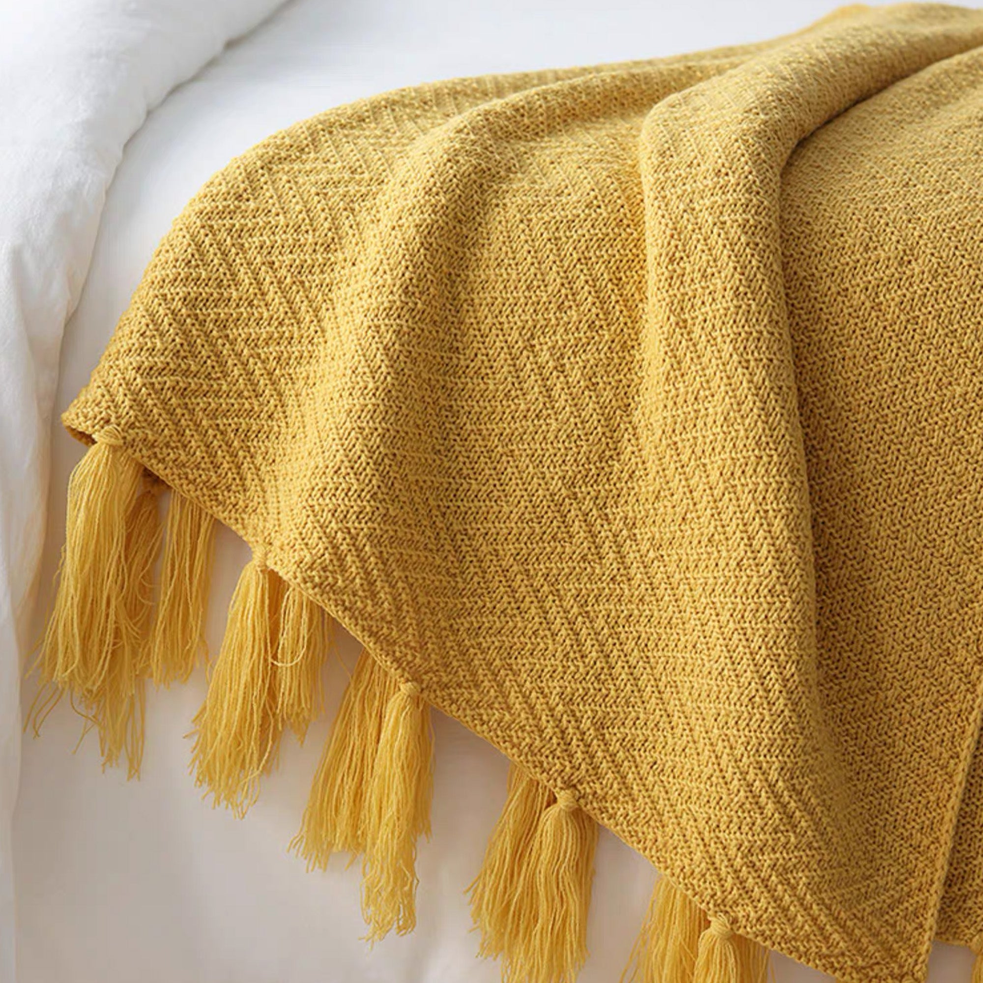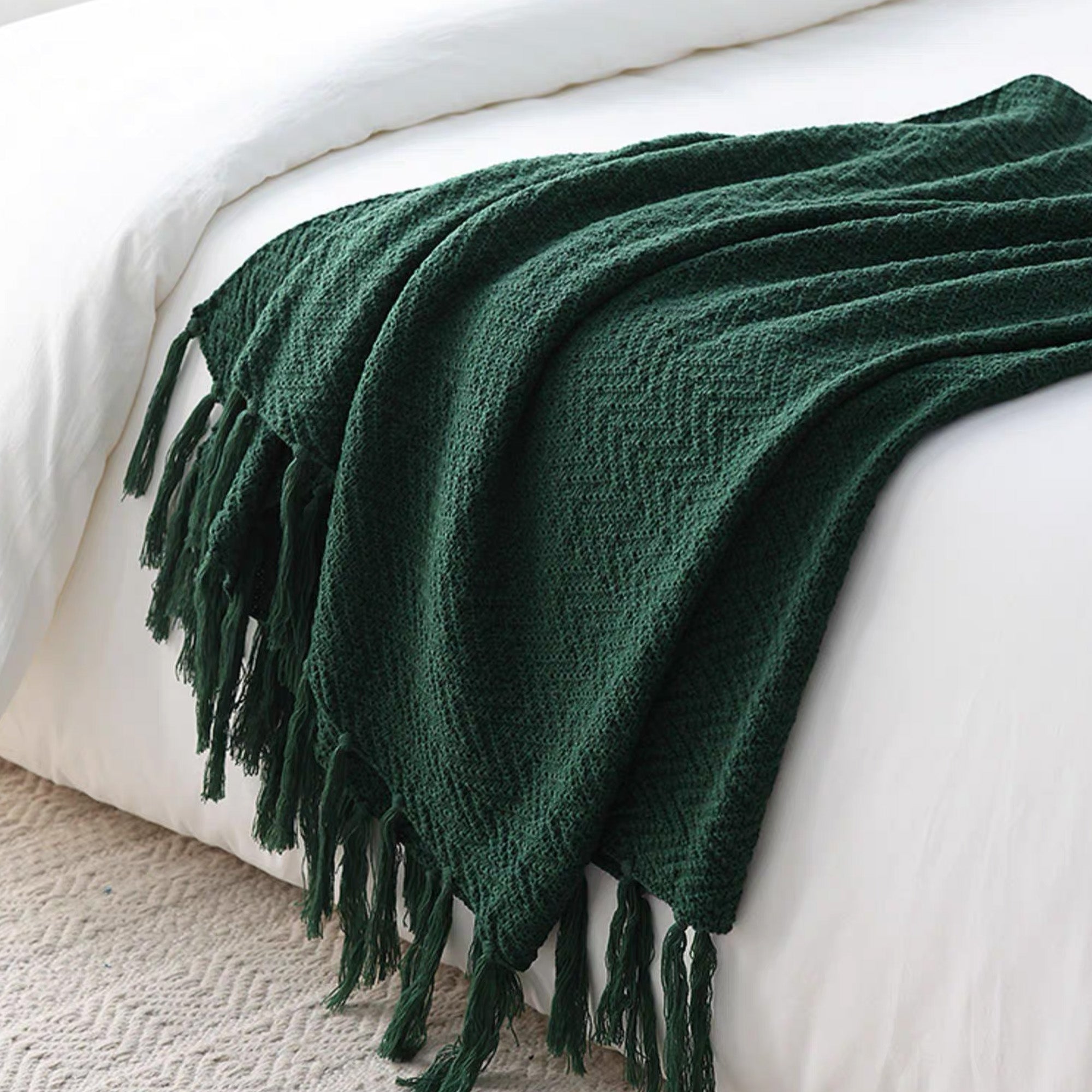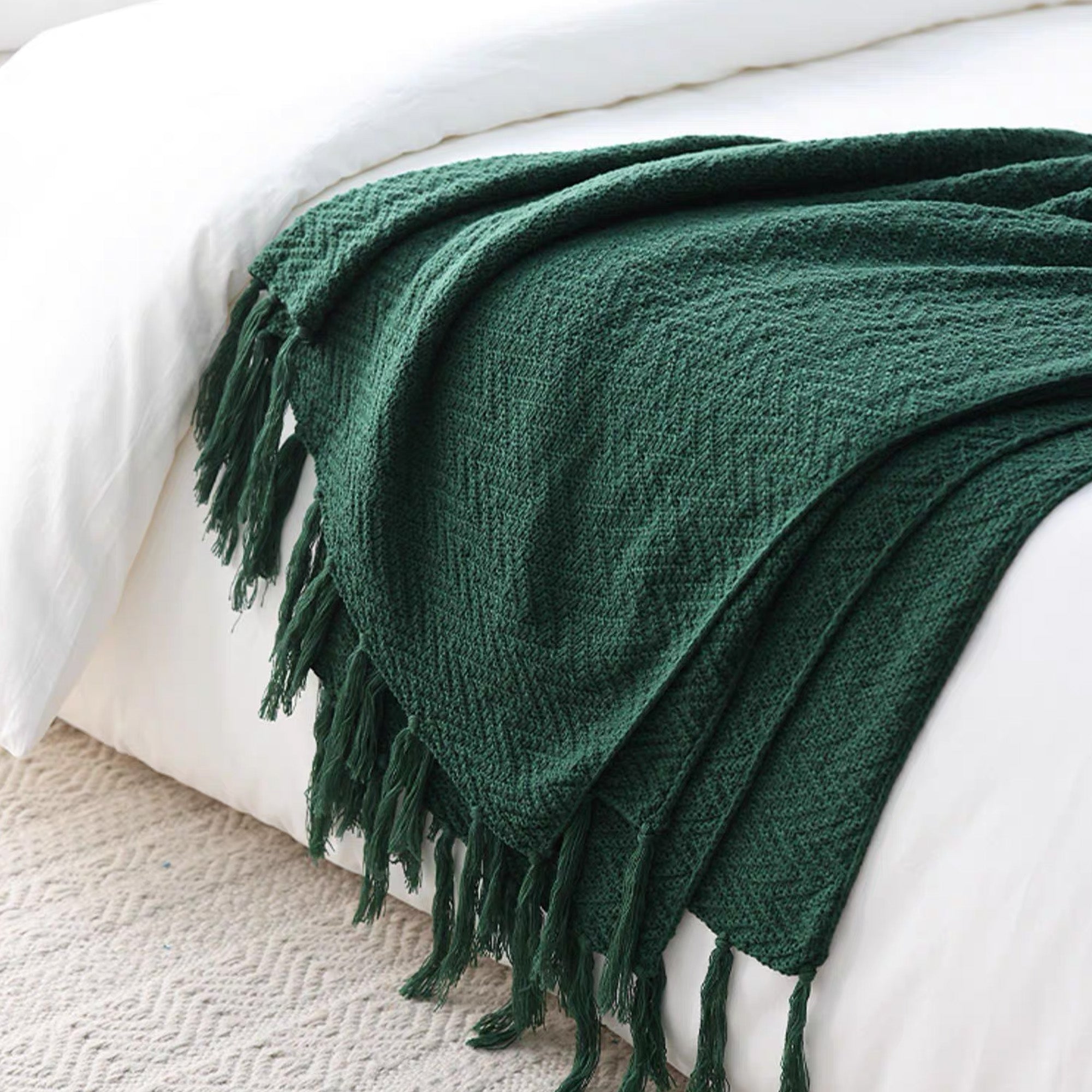 Omarm de warmte en elegantie van Scandinavisch design met onze Nordic gebreide plaid. Deze rijkelijk gestructureerde, diepblauwe deken heeft een klassiek visgraatmotief en is versierd met lange, vloeiende kwastjes, die elke kamer een gezellige en stijlvolle laag geven. Perfect om jezelf in te wikkelen op koude nachten of als een prachtig decoratief accent voor banken, bedden of leeshoekjes.