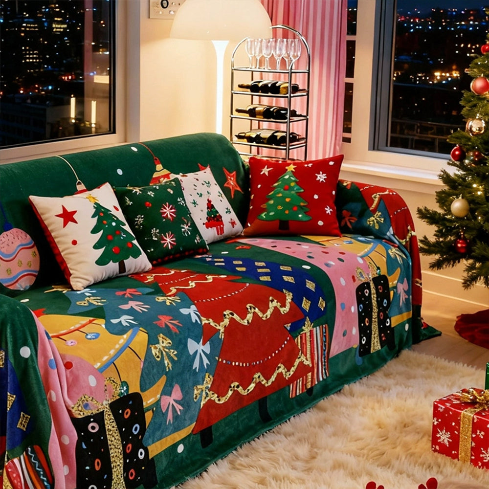 Haal een vrolijke, feestelijke warmte in huis met onze Holiday Charm Plush bankhoes. Met speelse kerstversieringen, geschenkdozen en feestelijke boommotieven transformeert deze hoes je woonkamer in een gezellig kerstwonderland. Gemaakt van ultrazacht, huisdiervriendelijk pluche, biedt hij zowel comfort als betrouwbare bescherming tegen vlekken, dierenharen en krassen.