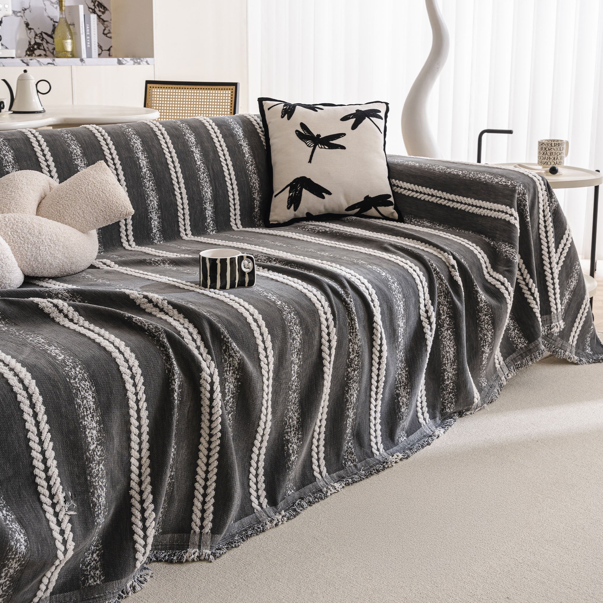 Getextureerde strepen, eigentijdse zachte, huisdiervriendelijke, duurzame bankhoes - machinewasbaar, minimalistische deken voor bankbescherming
