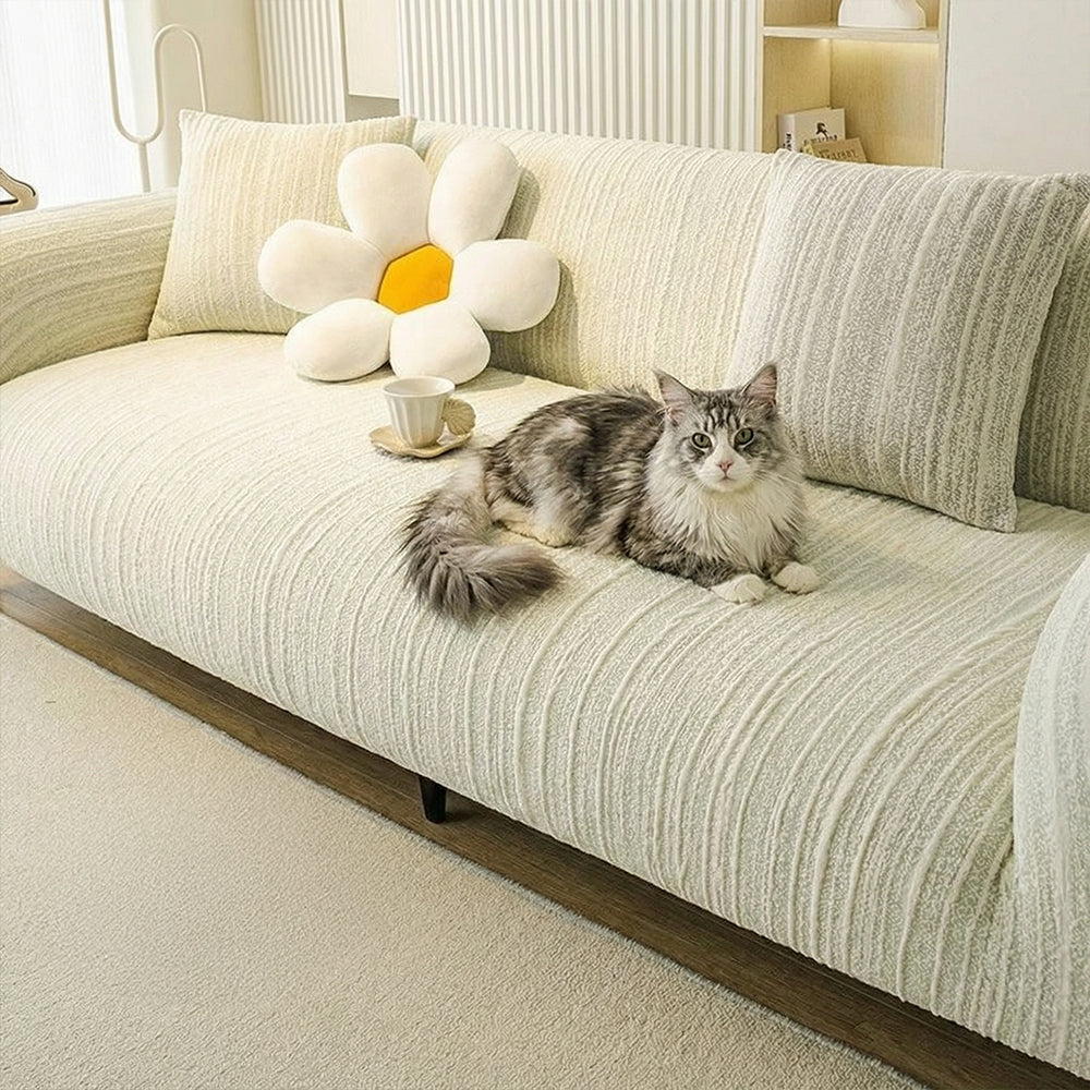 De hoes omhult de zitting, rugleuning, armleuningen en randen om te beschermen tegen stof, vlekken en dagelijkse slijtage.