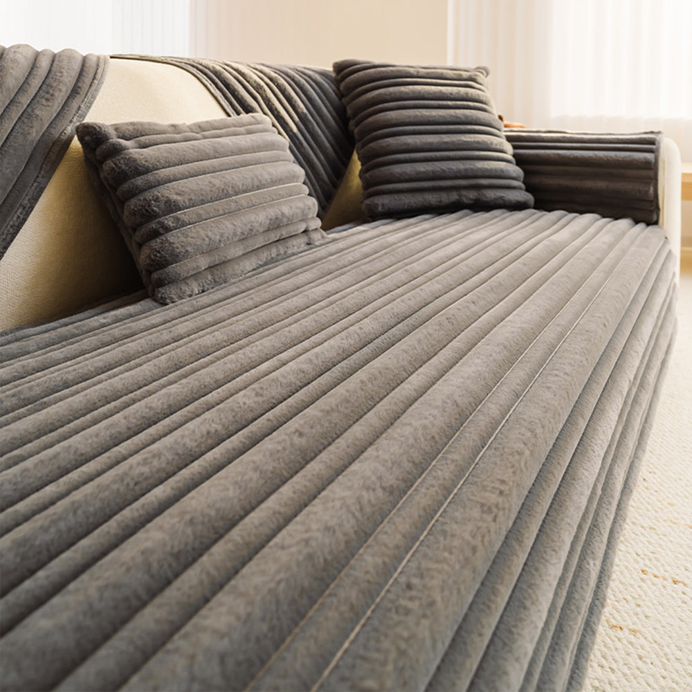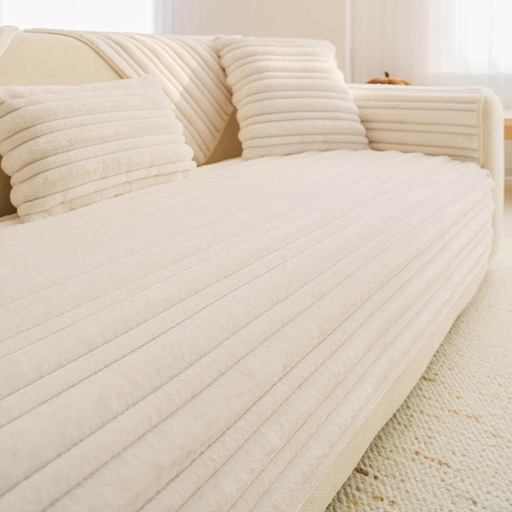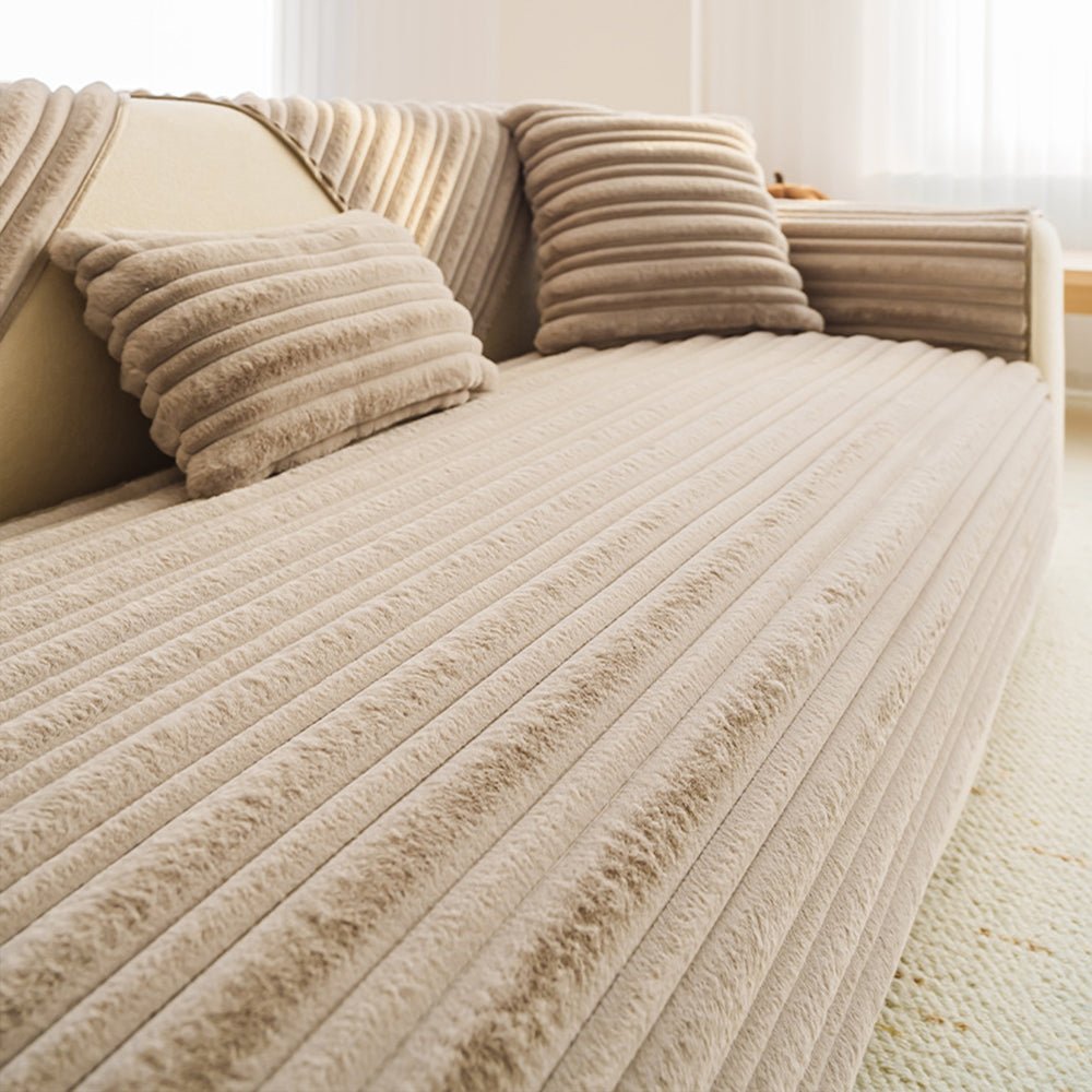 Omarm warmte en stijl deze herfst en winter met onze antislip bankhoes van pluche imitatiekonijnenbont. Deze hoes is ontworpen voor de warme maanden en is gemaakt van dikke, ultrazachte imitatiekonijnenbontstof, die een vleugje luxe en comfort aan uw woonkamer toevoegt. De getextureerde, pluche stof zorgt niet alleen voor een rijke, warme uitstraling, maar garandeert ook duurzaamheid en betrouwbare bescherming van uw bank.