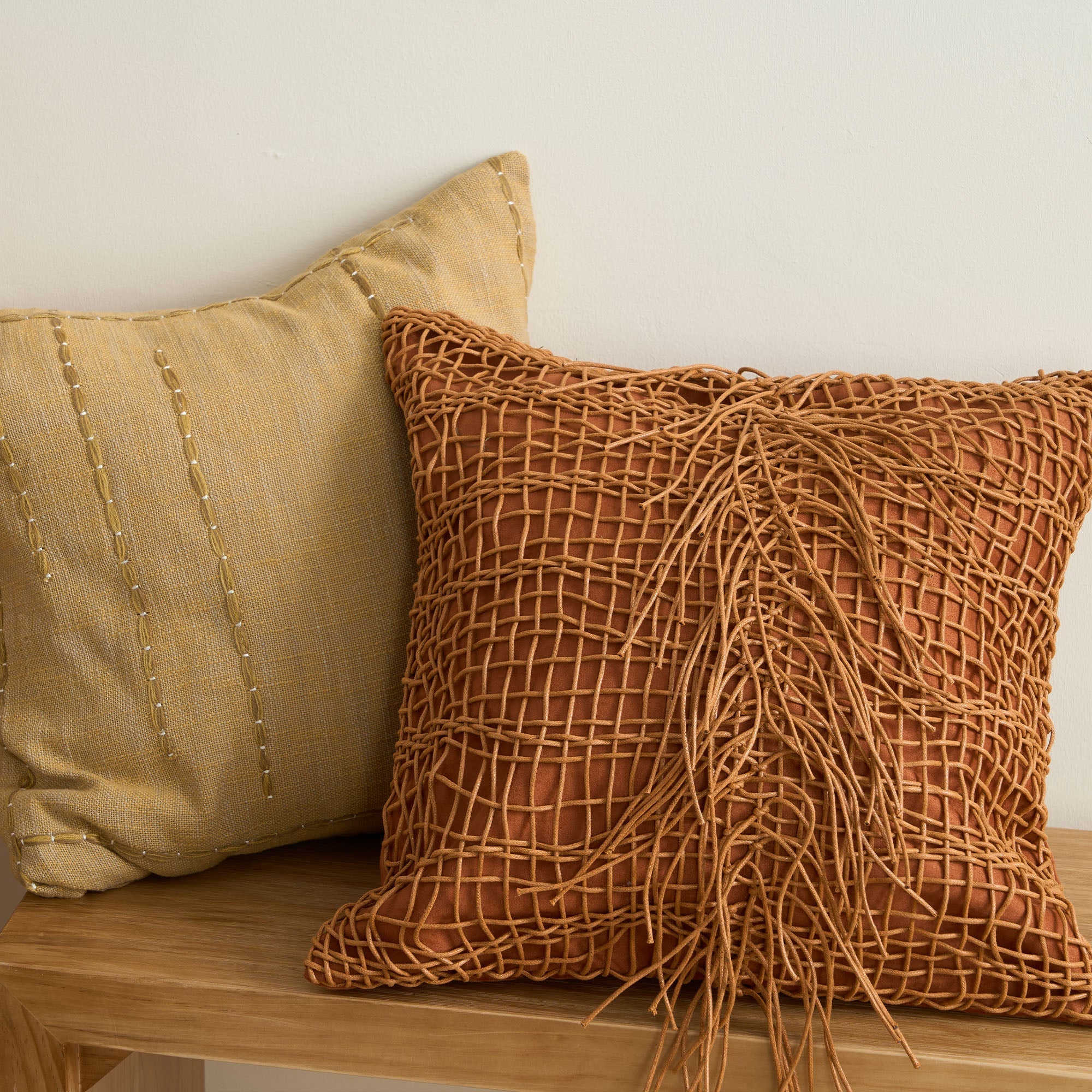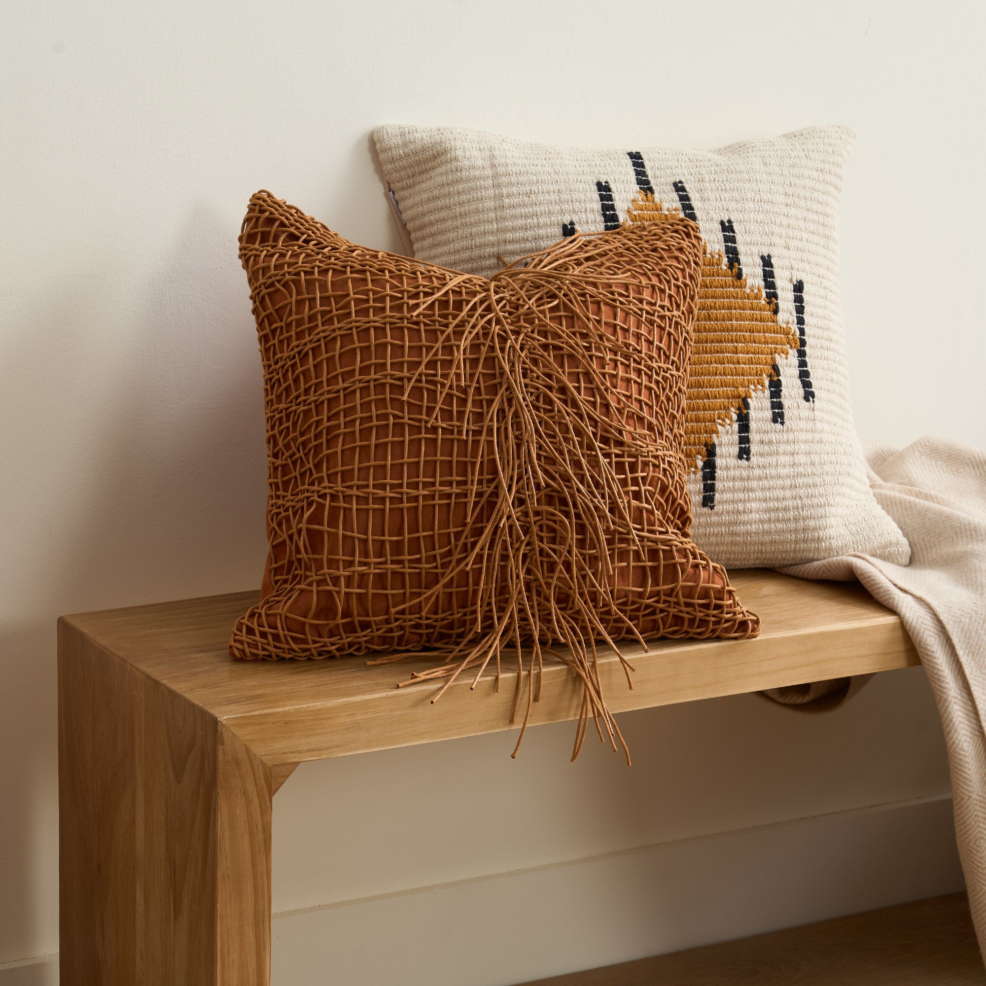 Breng een vleugje luxe in je woonkamer met onze leren kussenhoes met kwastjes! Klaar om te smelten in een zachte, knusse oase, elke keer dat je neerploft op de bank? Of je nu jezelf wilt verwennen of een geliefde wilt verrassen met een vleugje dagelijkse verwennerij, deze hoezen zijn de perfecte keuze. Beschouw het als je chique toevluchtsoord, waar ontspanning naadloos samengaat met artistieke flair.
