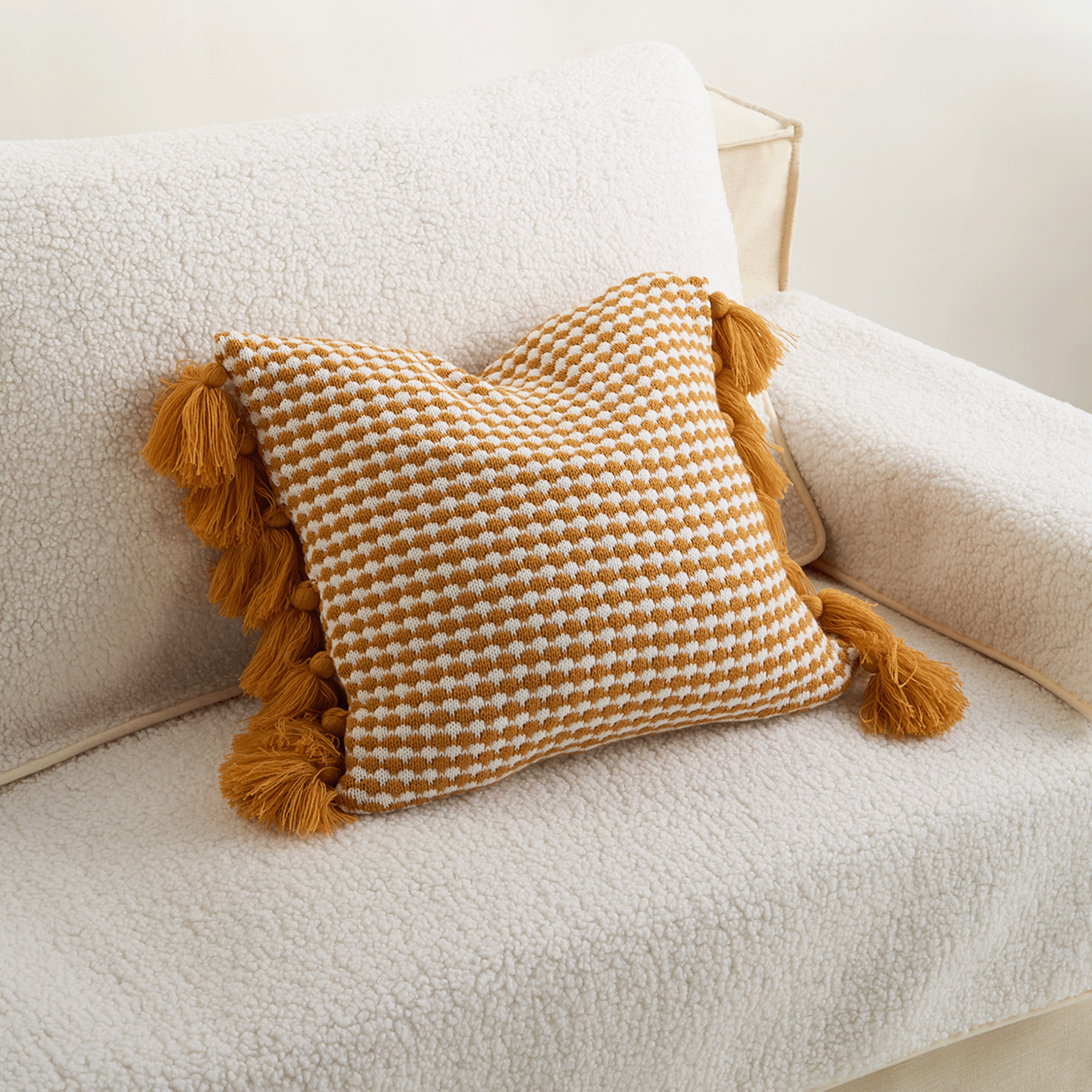 Maak kennis met het Tassel Charm Sofa Kussen, uw toegangspoort tot een verbeterde slaap en stijl! Gemaakt van hoogwaardig polyester en gevuld met premium PP-katoen, biedt dit kussen zacht, veerkrachtig comfort dat zeker een glimlach op uw gezicht tovert. Met een ruime keuze aan stijlen kunt u uw persoonlijke voorkeuren afstemmen en elke kamer een vleugje elegantie geven. Bovendien voegt het trendy kwastjesdesign een speelse charme toe.